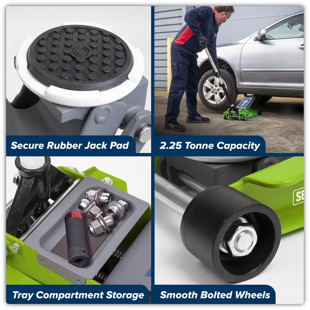 Sealey - 2001LEHV - Low Profile Rocket Lift Trolley Jack 2.25 Tonne - Green