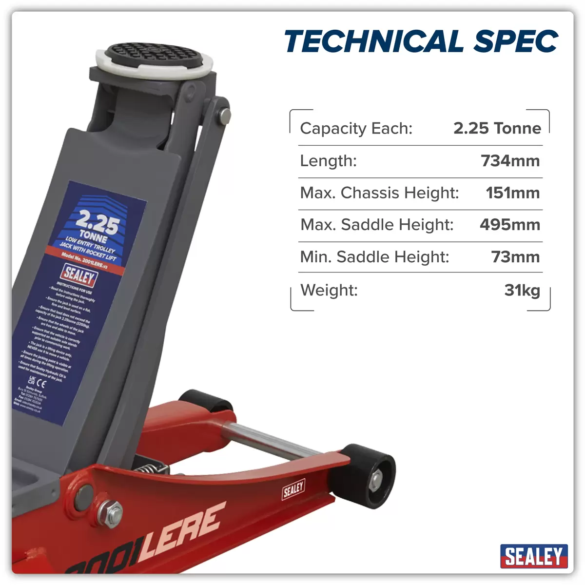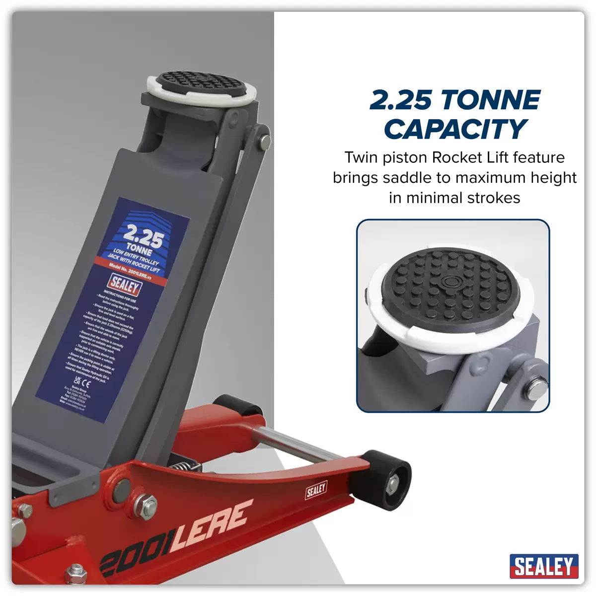 Sealey - 2001LERE - Low Profile Trolley Jack with Rocket Lift 2.25 Tonne - Red