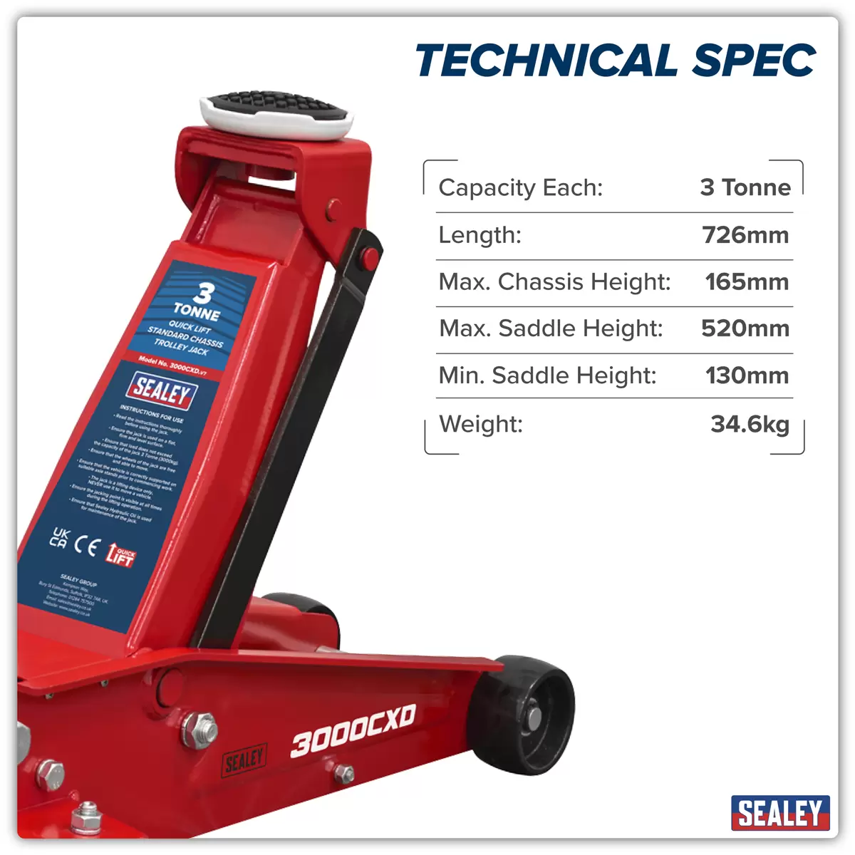 Sealey - 3000CXD - Quick Lift Standard Chassis Trolley Jack 3 Tonne