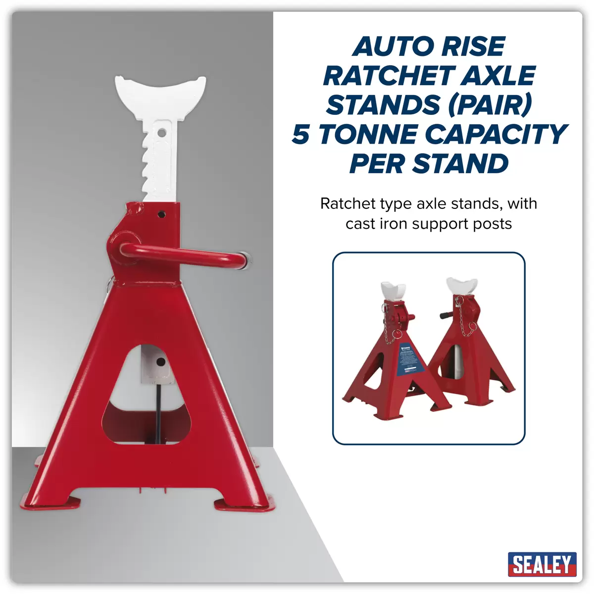 Sealey - AAS5000 - Auto Rise Ratchet Axle Stands (Pair) 5 Tonne Capacity per Stand