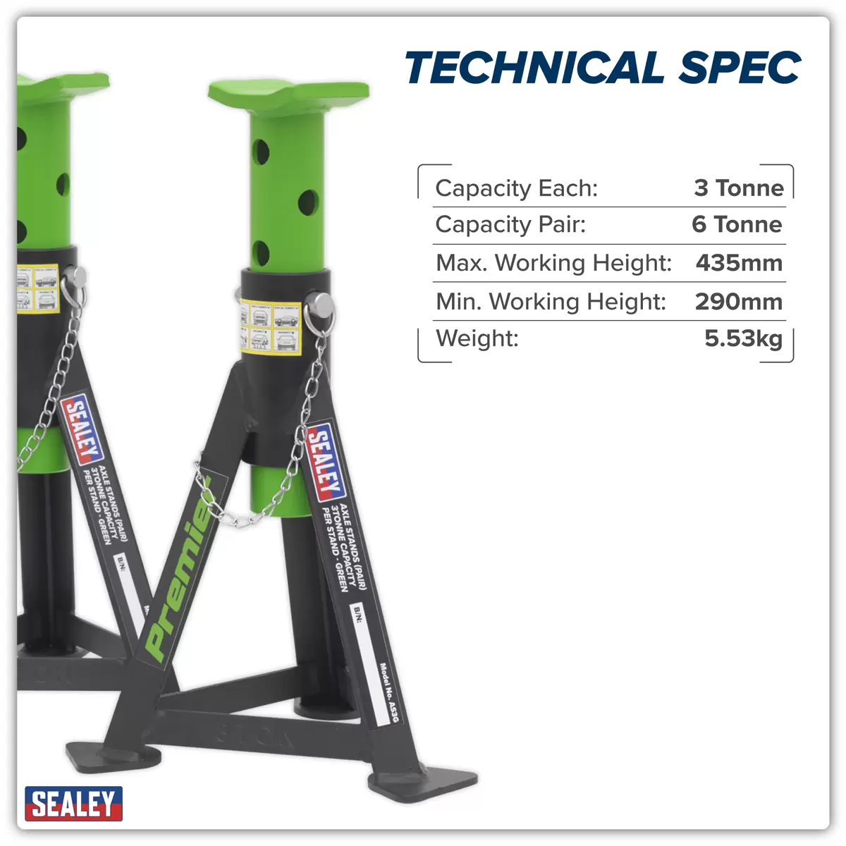 Sealey - AS3G - Premier Axle Stands (Pair) 3 Tonne Capacity per Stand - Green