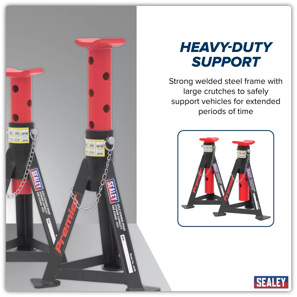 Sealey - AS3R - Premier Axle Stands (Pair) 3 Tonne Capacity per Stand - Red
