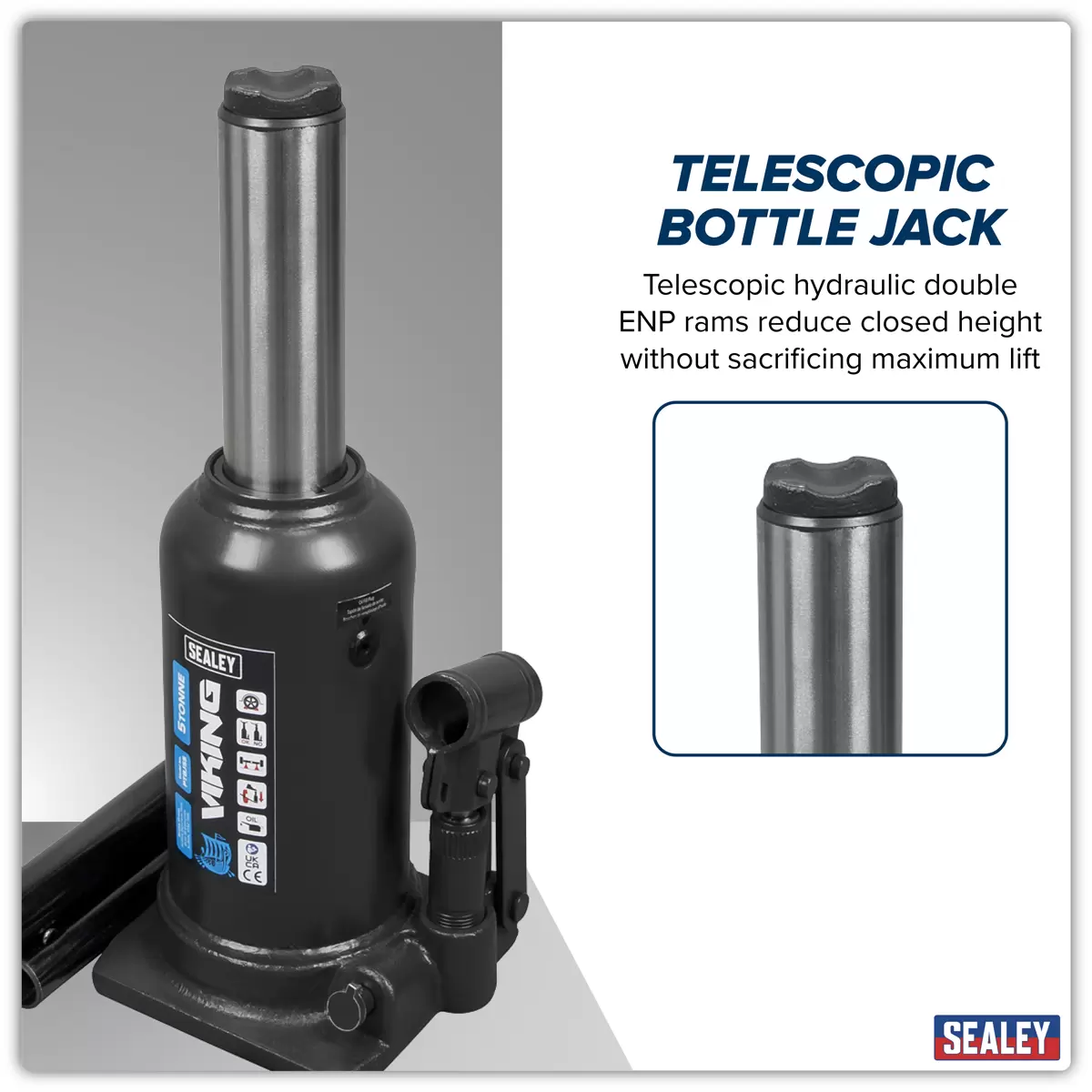 Home > Workshop Equipment > Jacking & Lifting > Sealey - PTBJ5S - Viking Telescopic Bottle Jack 5 Tonne