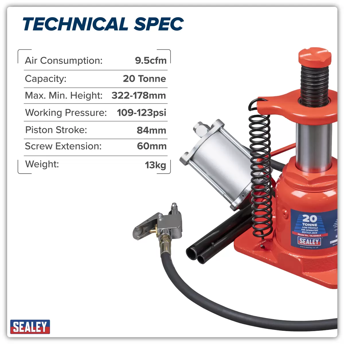 Home > Workshop Equipment > Jacking & Lifting > Sealey - YAJ20SLE - Low Profile Air Operated Hydraulic Bottle Jack 20 Tonne