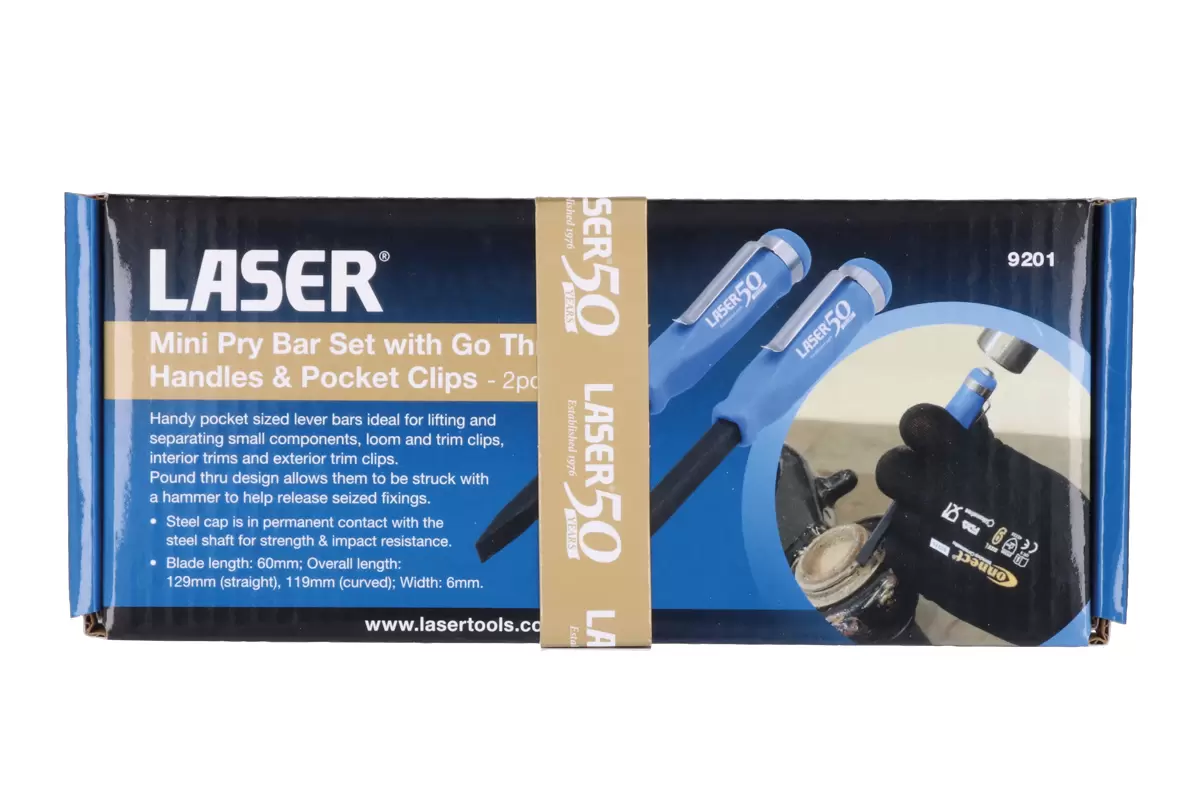 Laser -9201 - Mini Pry Bar Set with Go Thru Handles & Pocket Clips - 2pc - 50th Anniversary