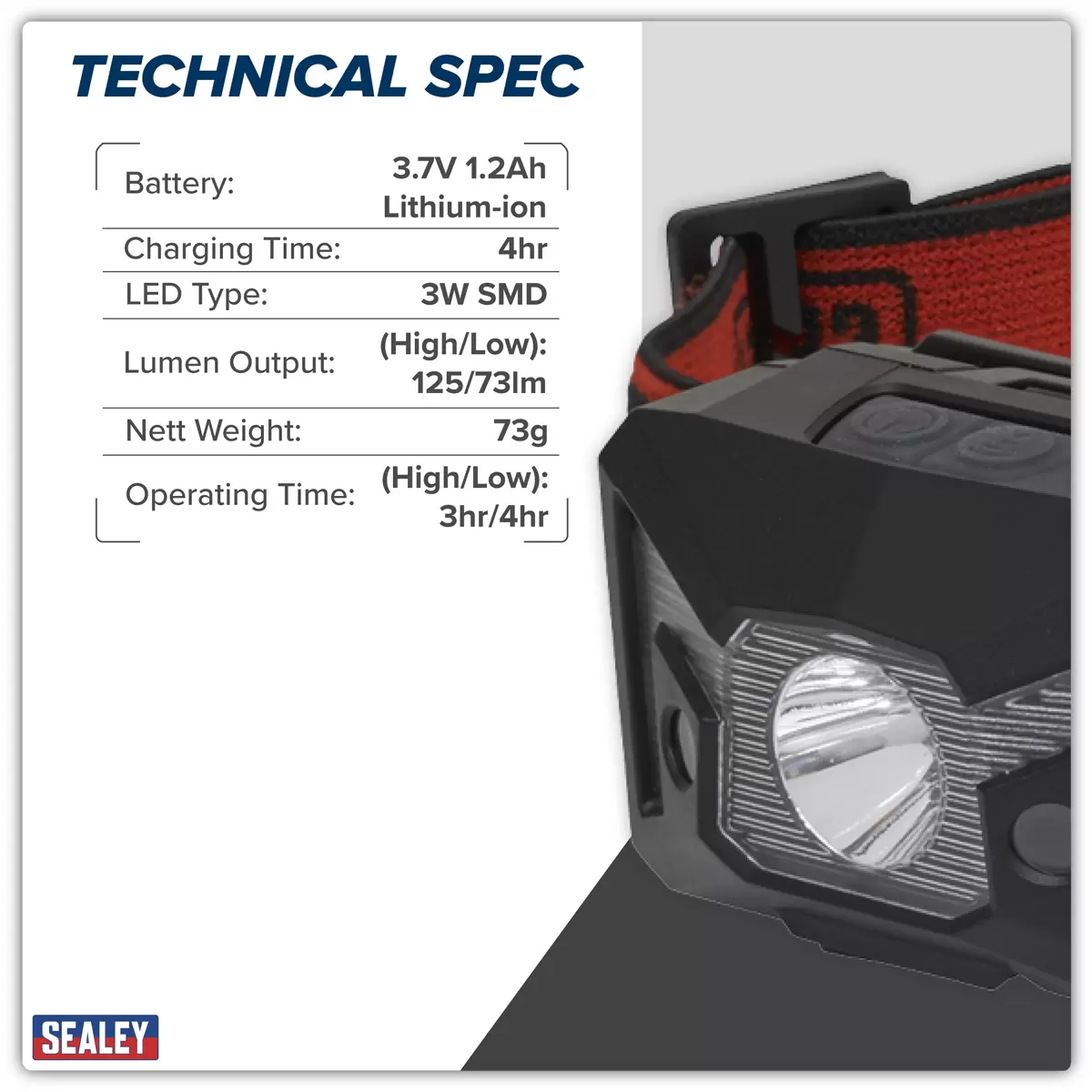 Sealey - HT102R - Rechargeable Head Torch with Auto-Sensor 3W SMD LED