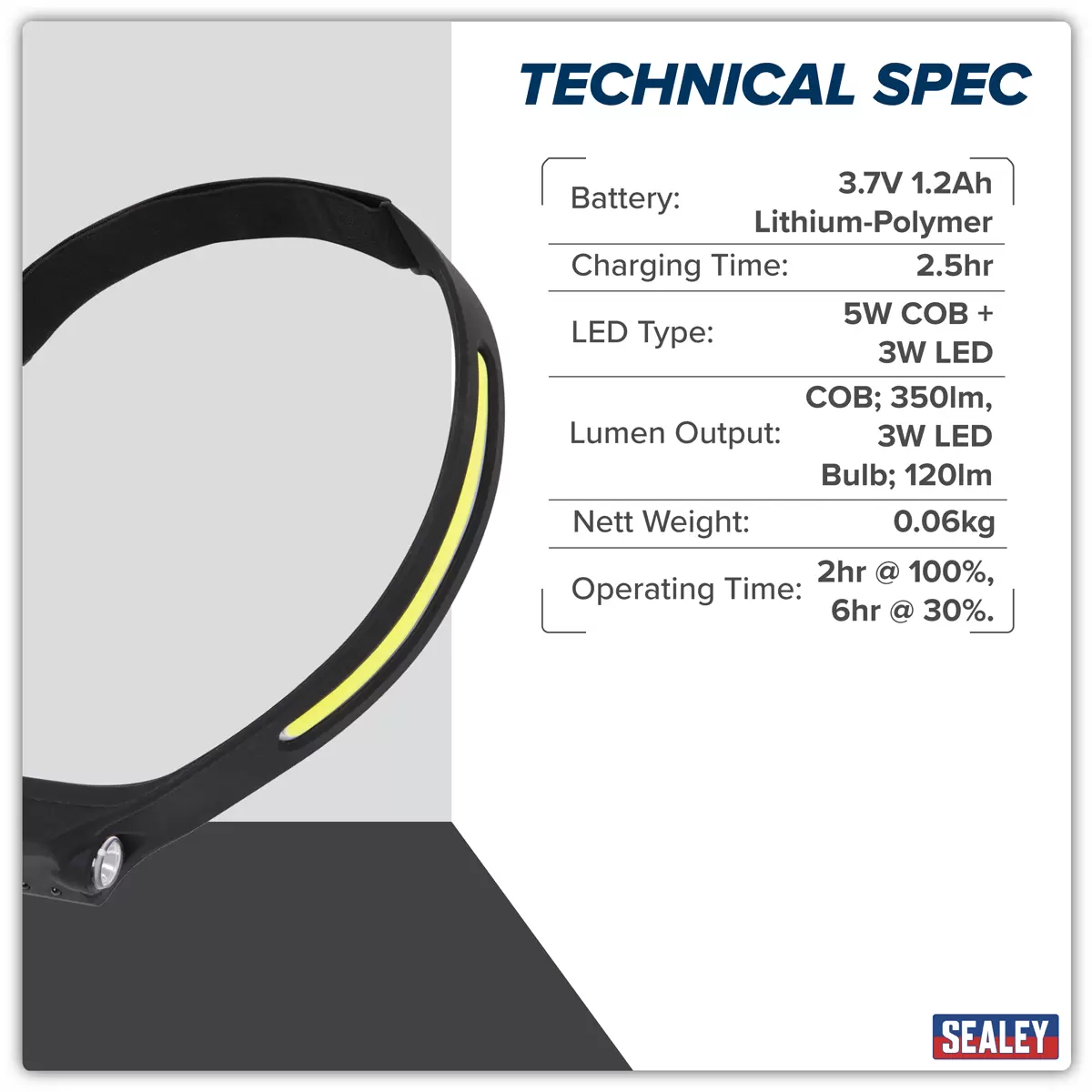 Sealey - HT104R - Rechargeable Head Torch with Auto-Sensor 5W COB & 3W LED
