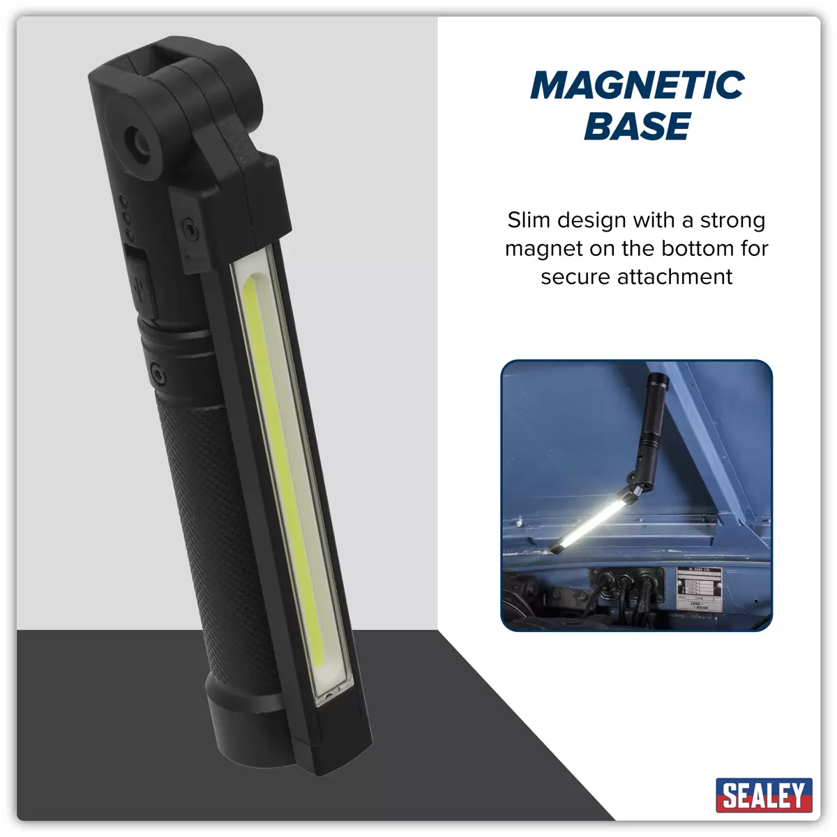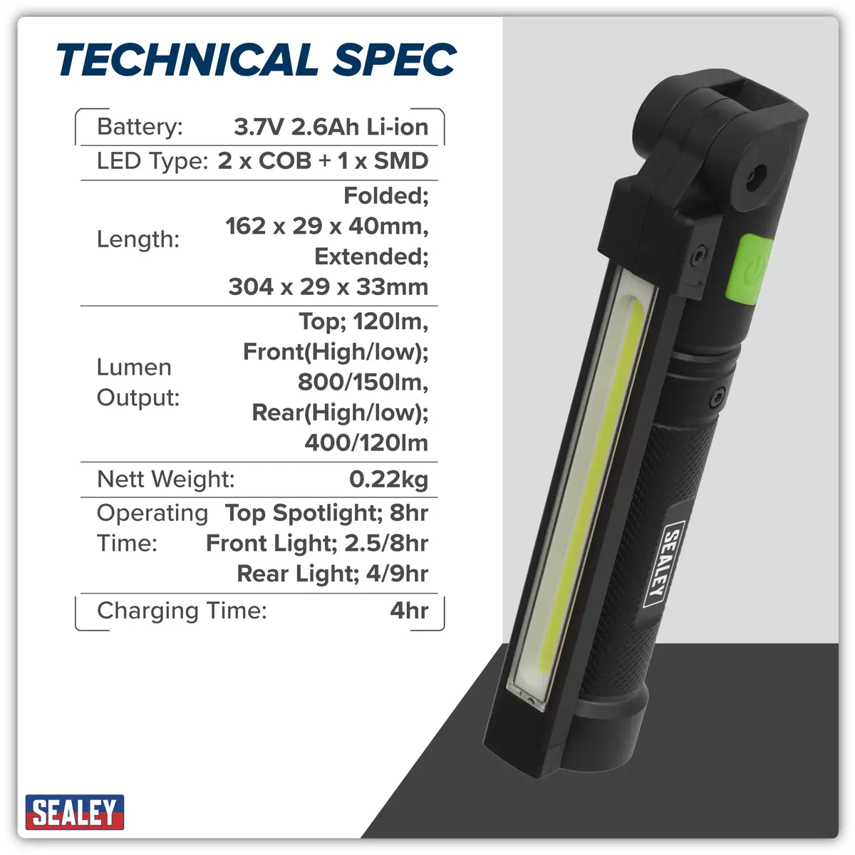 Sealey - LED02G - Rechargeable Aluminium Folding Pocket Light 2 COB & 1 SMD LED