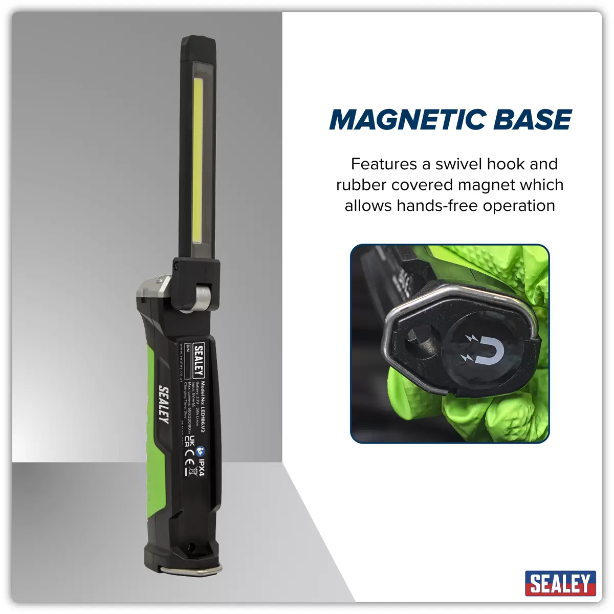 Home > Hardware / Consumables > Lighting & Power > Sealey - LED186 - Rechargeable Slim Folding Inspection Light 6W COB LED & 1W SMD LED Lithium-ion