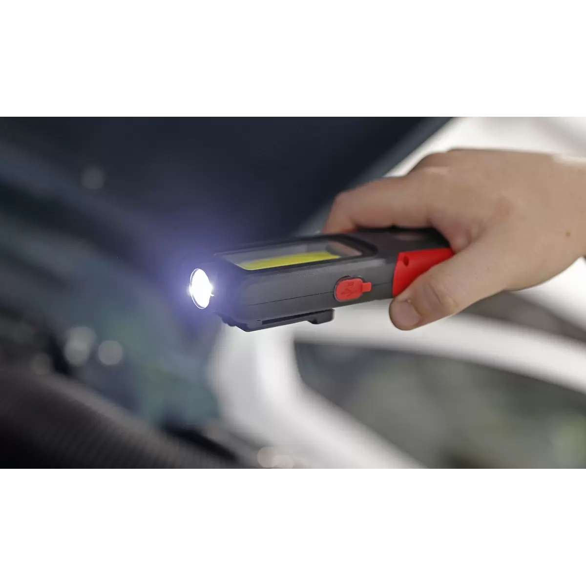 Home > Hardware / Consumables > Lighting & Power > Sealey - LED318R - Rechargeable Inspection Light with Power Bank 5W COB & 3W SMD LED - Red