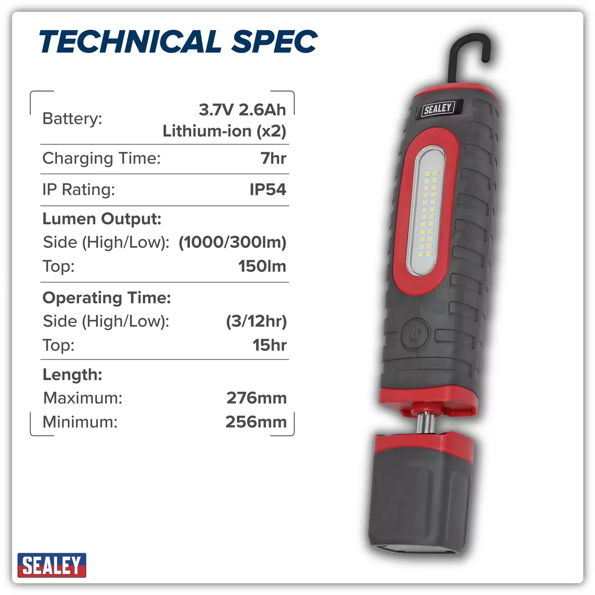 Sealey - LED3606R - Rechargeable 360° Inspection Light 15W & 3W SMD LED - Red