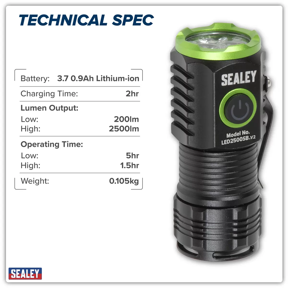 Sealey - LED2500SB - Super Beam 2500lm Rechargeable SMD LED 24W Pocket Light
