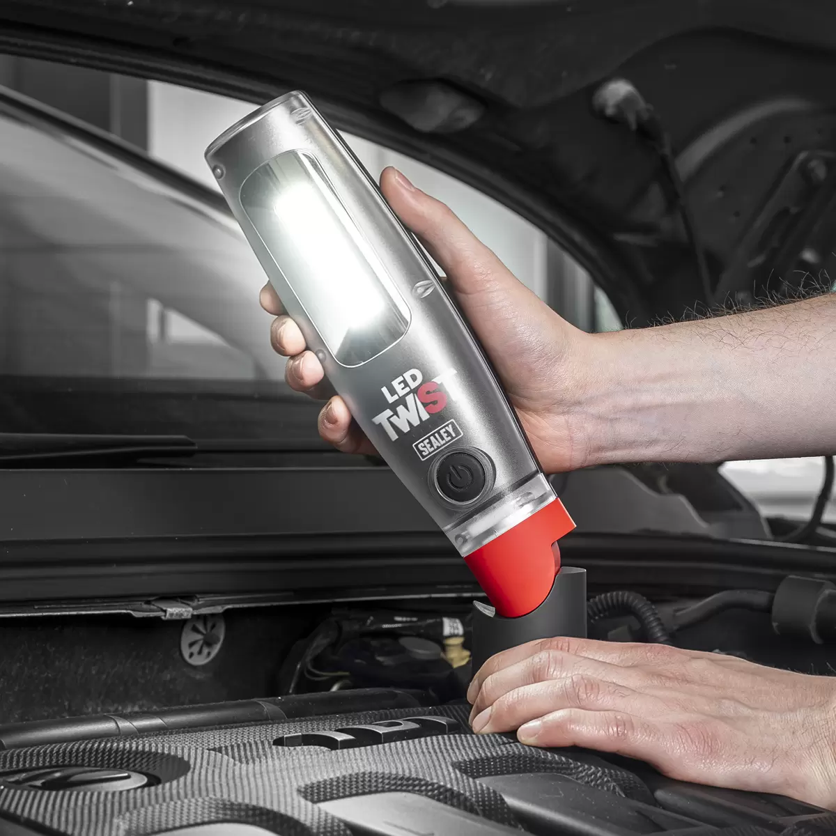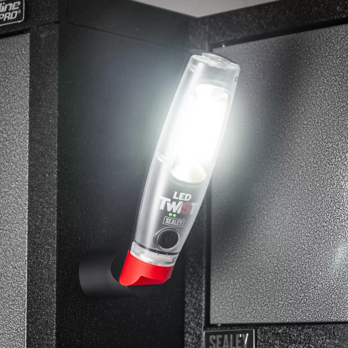 Sealey - LED3001 - Rechargeable LED Twist® Inspection Light 20W COB & 3W SMD, 3000lm, Magnetic Base & Power Bank