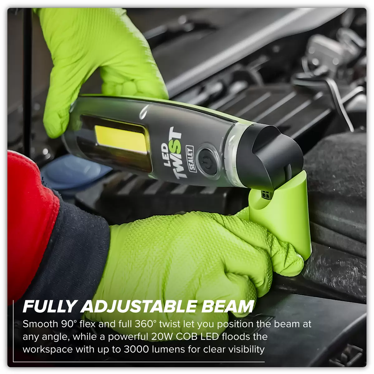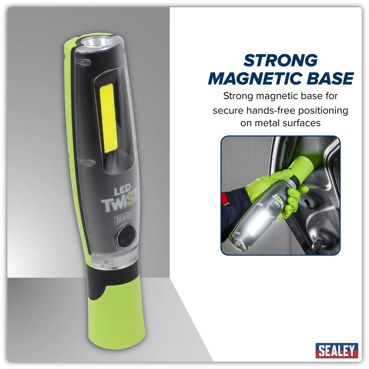 Sealey - LED3001G - Rechargeable LED Twist® Inspection Light 20W COB + 3W SMD, 3000lm, Magnetic Base & Power Bank