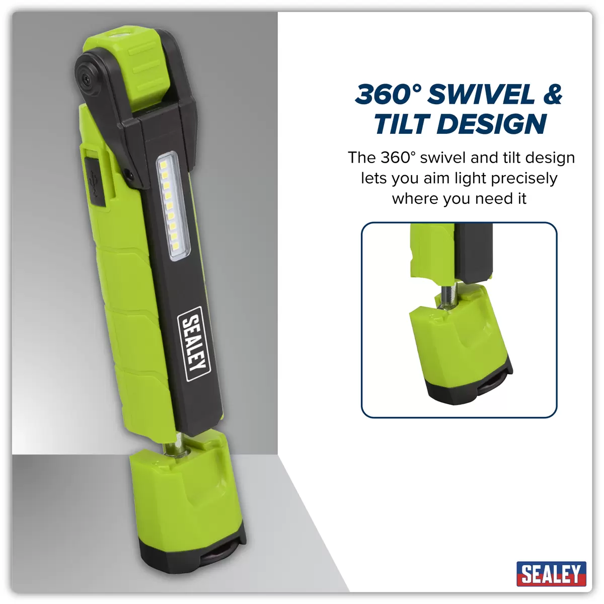 Sealey - LED3605G - Rechargeable 360° Inspection Light 10W & 2 x 4W SMD LED - Green