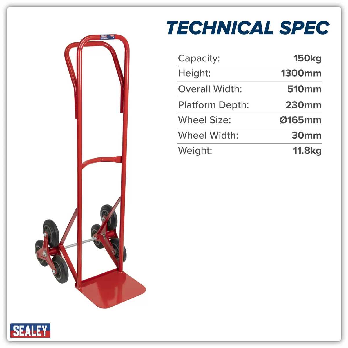 Sealey - CST985 - Stair Climbing Sack Truck with Solid Tyres 150kg Capacity