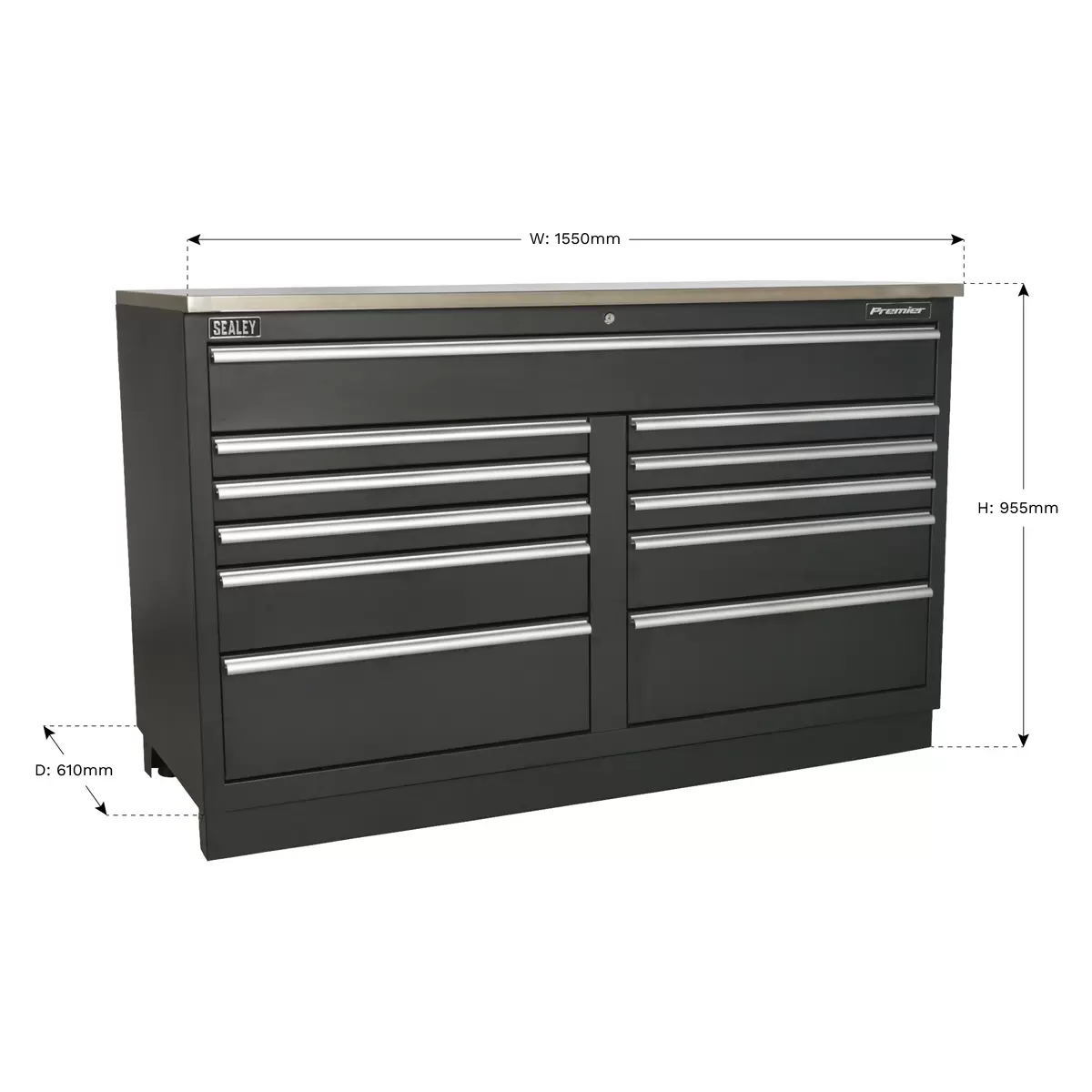 Sealey - APMS04 - Premier™ Heavy-Duty Modular Floor Cabinet 11 Drawer 1550mm
