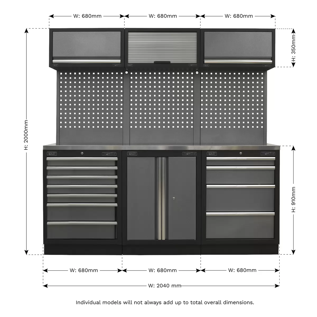 Home > Workstations / Storage > Modular Storage Systems > Sealey - APMSSTACK07SS - Superline PRO® Storage System with Stainless Worktop 2.04m