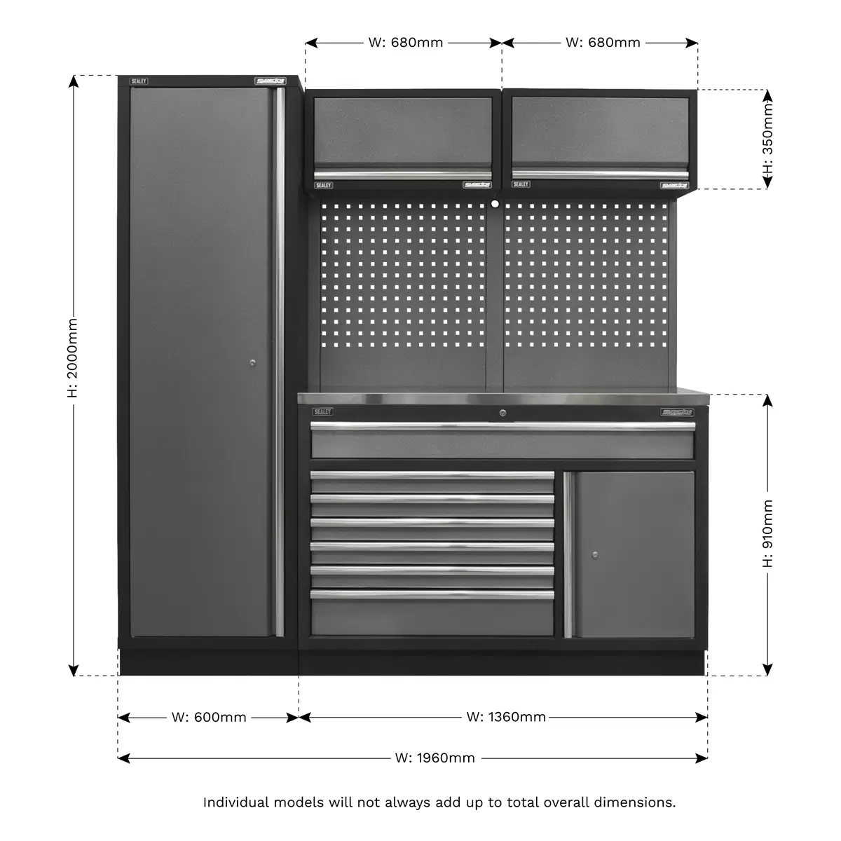 Home > Workstations / Storage > Modular Storage Systems > Sealey - APMSSTACK09SS - Superline PRO® Storage System with Stainless Steel Worktop 1.96m