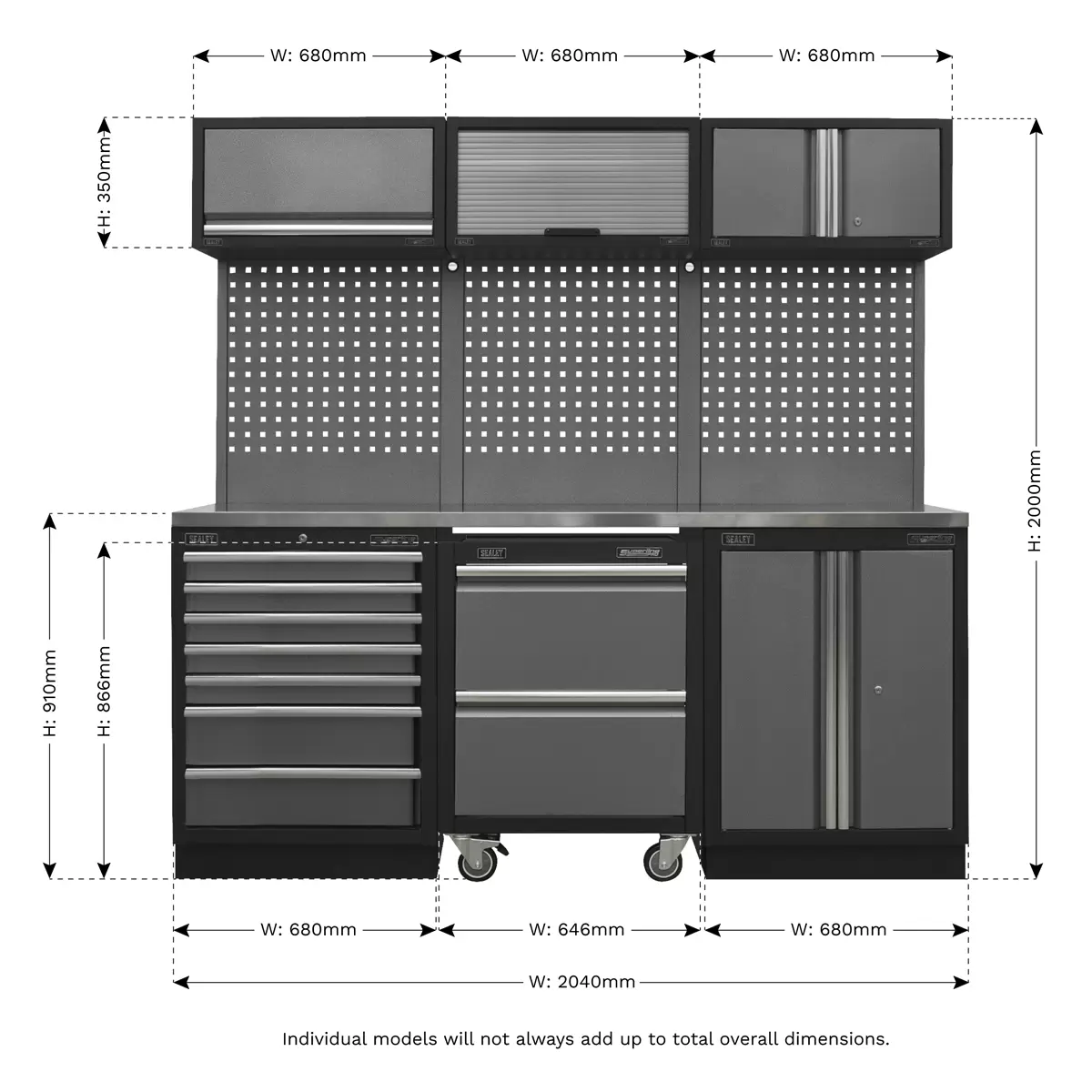 Home > Workstations / Storage > Modular Storage Systems > Sealey - APMSSTACK12SS - Superline PRO® Storage System with Stainless Steel Worktop 2.04m