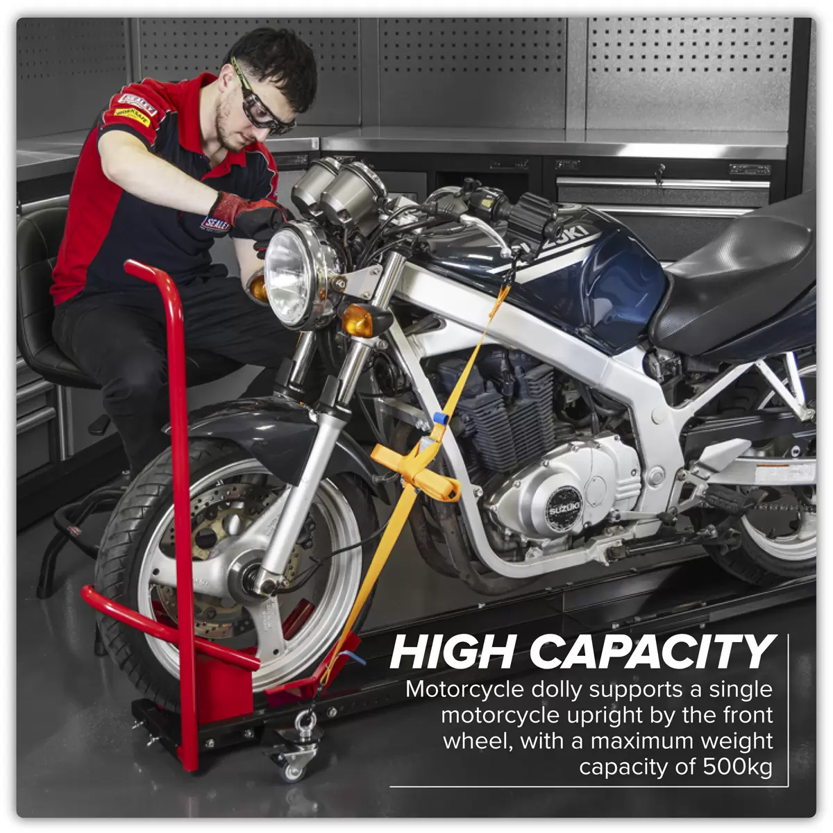 Home > Workshop Equipment > Motorcycle Products > Sealey - MS063V - Motorcycle Upright Clamp Type Dolly