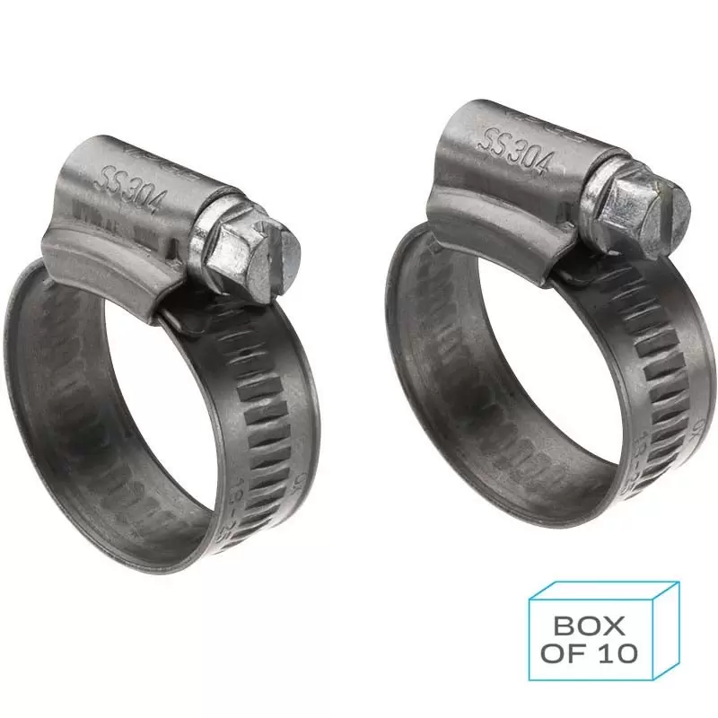 PCL's 304 Stainless Steel Worm Drive Hose Clips are available in a range of popular sizes from 9.5 to 40 mm. Their continuously threaded band provides maximum band tension and clamping force when adjusting the clip to the correct size.