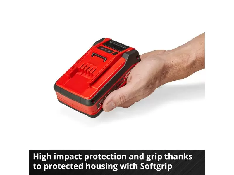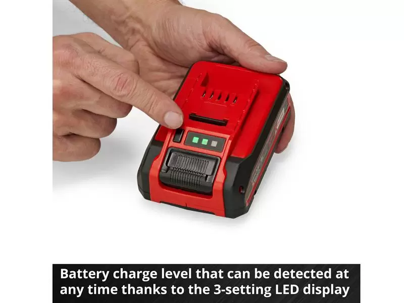 The Einhell Power X-Change Li-ion Batteries are controlled by a micro-processor, which monitors its key parameters such as temperature, voltage and current strength.