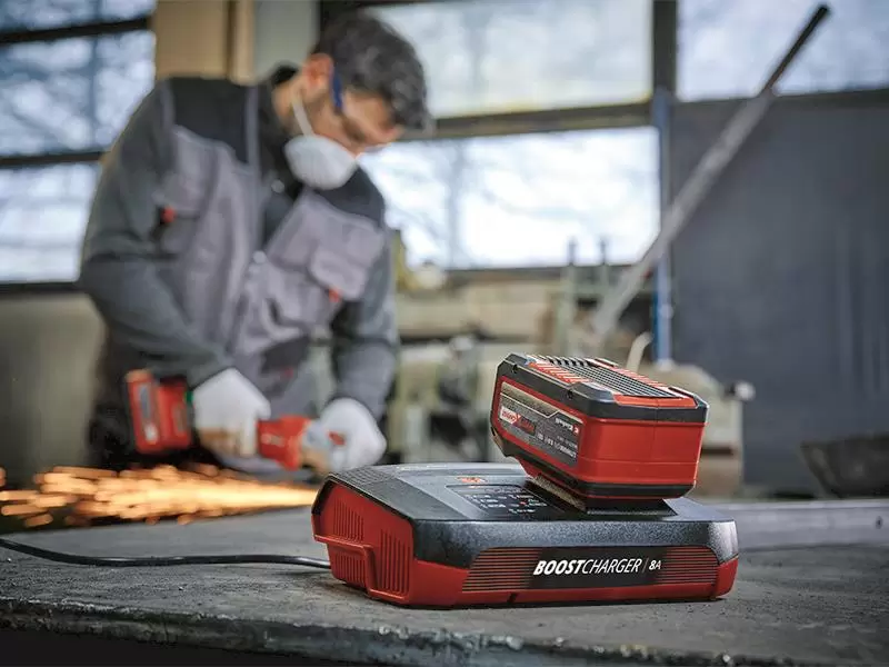The Einhell Power X-Boostcharger 8A can be used to charge all Power X-Change rechargeable batteries. Its selectable boost mode can be used to significantly reduce the charging times, up tp 62%.