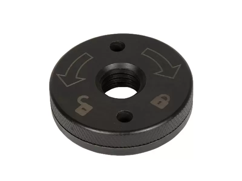 The quick-release nut makes it possible to quickly change the cutting disc without tools. Its additional handle can be mounted in two positions and features softgrip surfaces for comfortable handling. Maximum flexibility is offered by the disc guard with quick adjustment, which can be adapted to the respective working position.