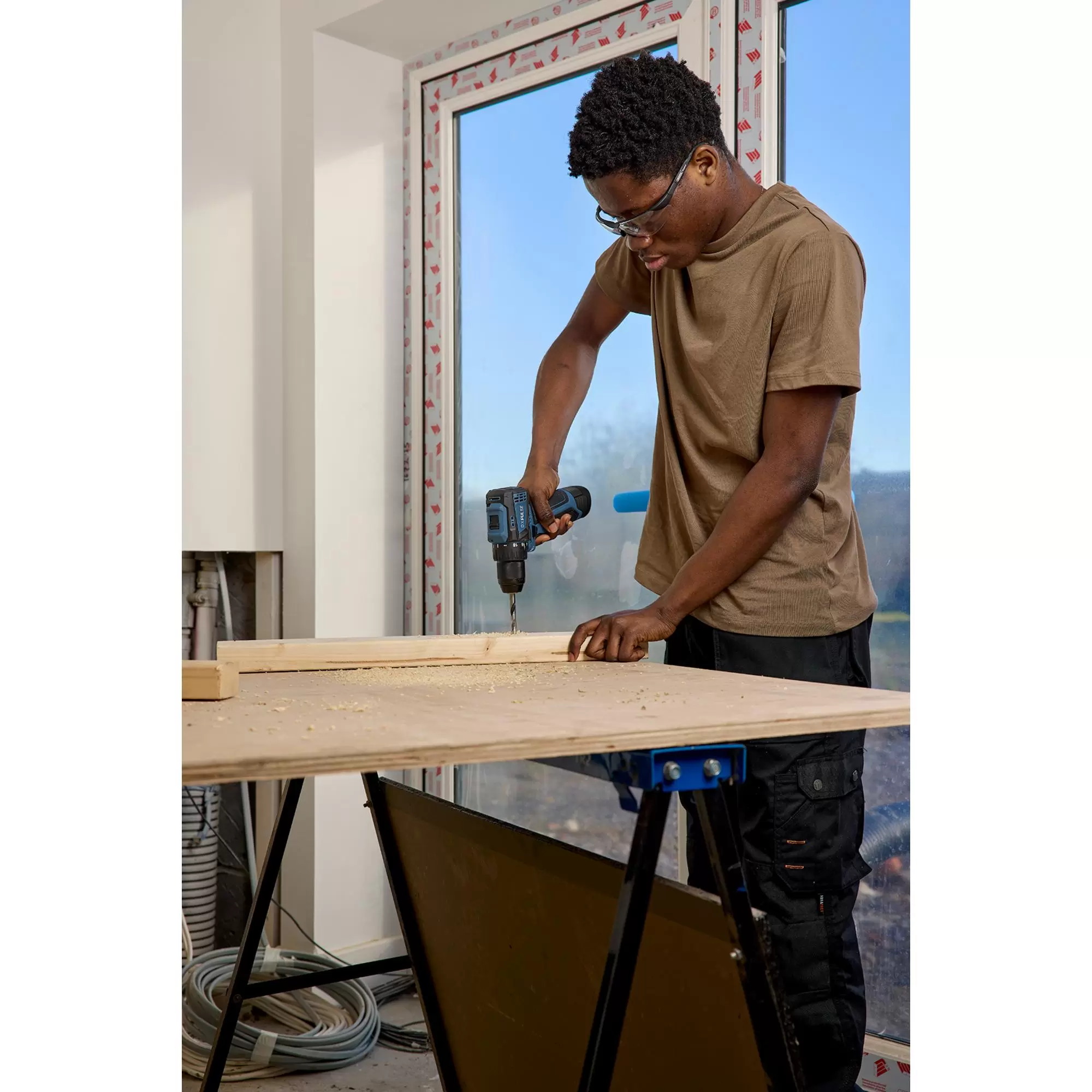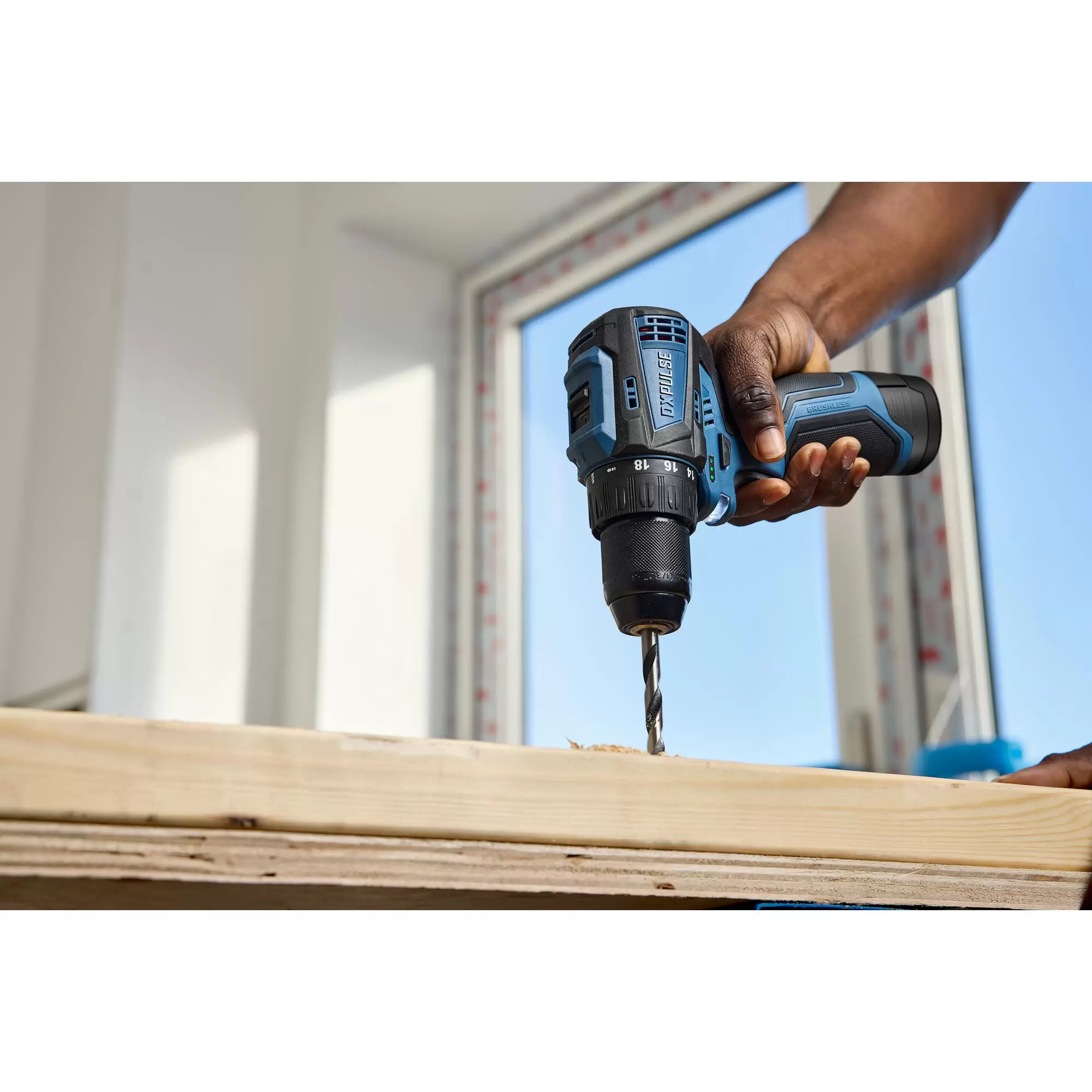 This cordless drill driver is part of the DXPULSE12V Interchange Series. The brushless motor enhances efficiency, offering more power and a longer battery life. It features a 10mm metal keyless chuck, 18+1 torque settings, forward/reverse, a 2-speed gearbox, a variable speed trigger, and an LED worklight. Its compact design makes it ideal for use in tight spaces. Weighing less than 1 kg, it is easy to use, and the soft grip handle ensures comfort during extended use. It is powered by a 12V lithium-ion battery, and there is an LED battery level indicator. Comes complete with 2 x 2.0Ah batteries and 1 x charger, a range of screwdriver bits, bit holder and HSS drill bit in a sturdy plastic storage case.