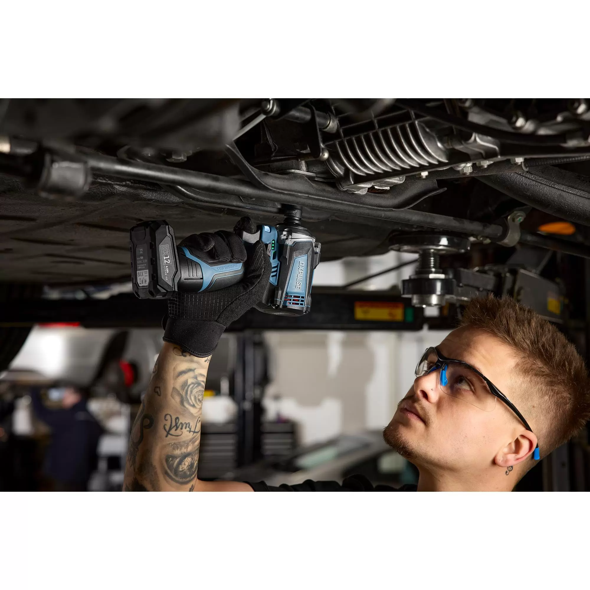 This cordless impact wrench is part of the DXPULSE 12V Interchange Series. The brushless motor enhances efficiency, offering more power and a longer battery life. It features a durable aluminium gearbox, 3-speed settings, a variable speed trigger with quick stop, forward/reverse and an LED worklight. Its compact design makes it ideal for use in tight spaces. Weighing less than 1 kg, it is perfect for overhead tasks, and the soft grip handle ensures comfort during extended use. It is powered by a 12V lithium-ion battery, and there is an LED battery level indicator. DX12 batteries and chargers are sold separately