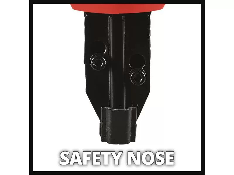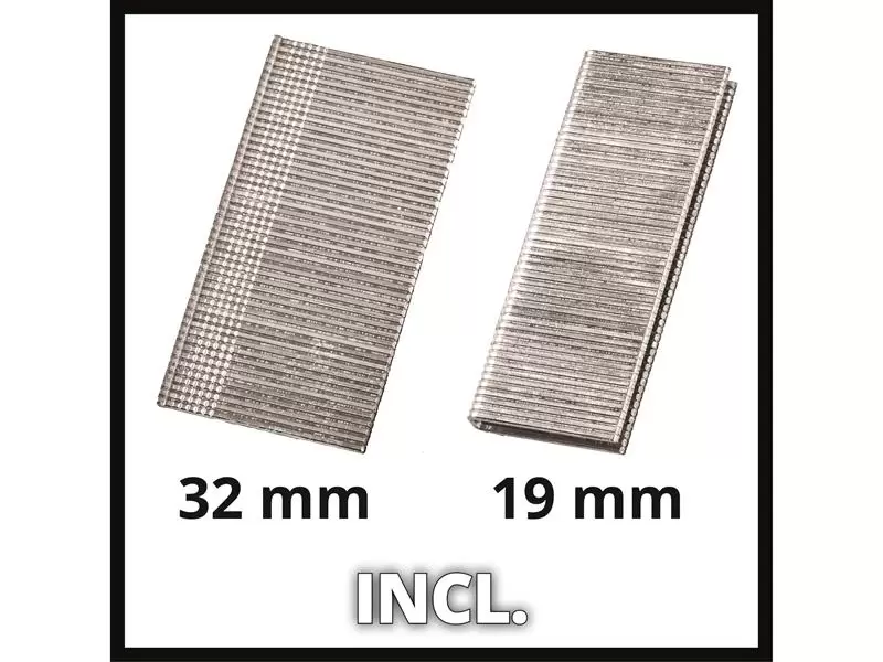 Delivery includes practical belt clip for safe storage and 300 nails (32mm) + 300 staples (19mm). With the supplied hexagon key, nail/staple jams can be easily and quickly fixed. Release protection prevents unintentional tacking/nailing, preventing injury.