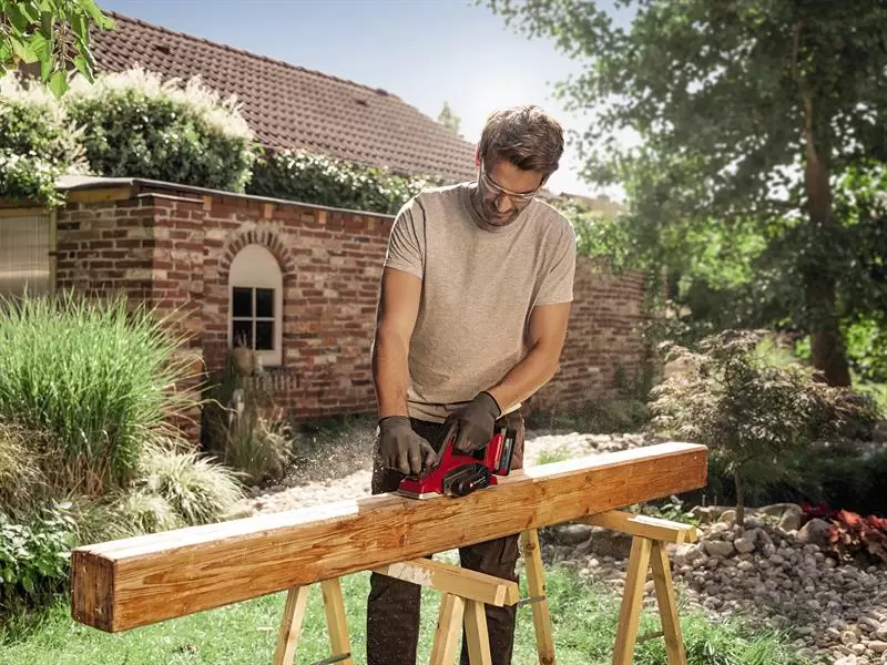 The Einhell TE-PL 18/82 Li - Solo Planer has large knife shafts and a solid aluminium soleplate to provide optimum, flat results.