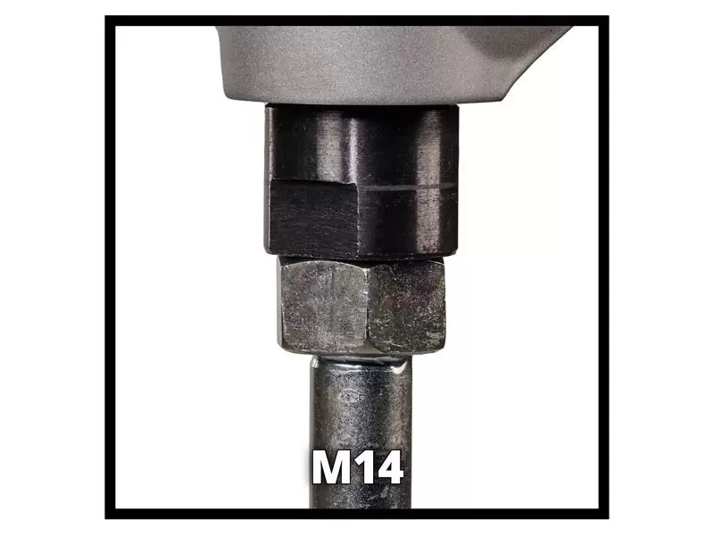 The ergonomically shaped handle with integrated softgrip surfaces ensures a firm grip and comfortable, safe handling. Fitted with a M14 thread for use with all common M14 stirrers. Delivery includes a stirrer (Ø 120mm) and an open-ended spanner for easy stirrer replacement.