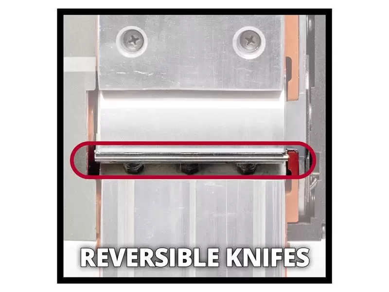 The large blade shafts guarantee outstanding planing results, while the solid aluminium base plate ensures a flat working surface. This base plate is also provided with three V-grooves, which allow for easy chamfering of edges. The chip ejector can be mounted on two sides, allowing flexible working. Chip depth can be adjusted continuously.