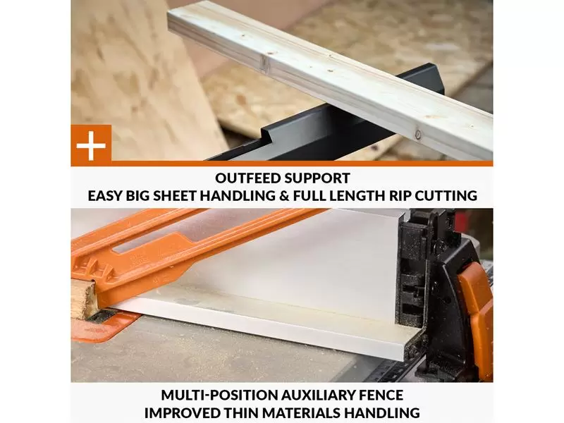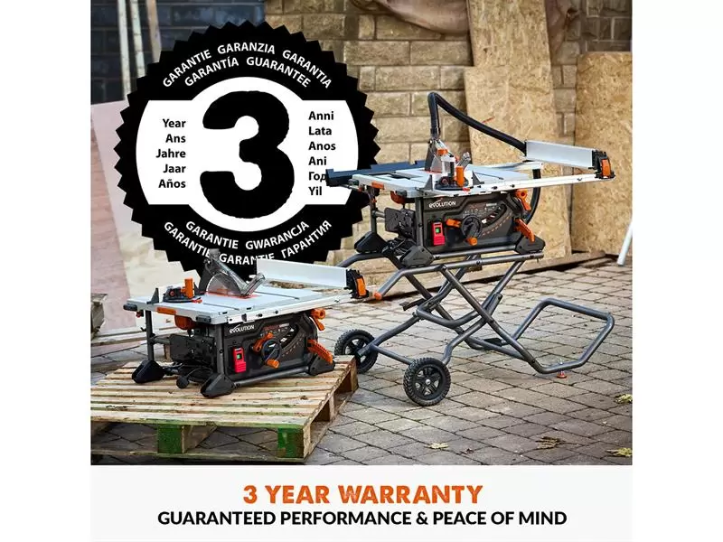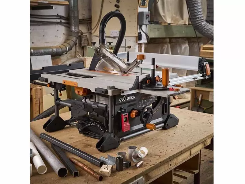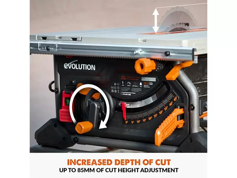 The Evolution R255TBLX+ Portable Jobsite Table Saw is more accurate. A clean sheet design from top to bottom, it features a dual rack & pinion rip-fence for accurate, repeatable cuts. A new gear-driven blade height and bevel adjustment mechanism offers repeatable micro-adjustment. Our patented blade-to-rip-fence parallelism adjustment allows for perfectly aligned cuts in full-size sheets without binding or kickback. The R255TBL+ also features a Metal Throat Plate with corner height adjustment. All this comes together to make the R255TBL+ the most accurate and adjustable table saw we've ever made.