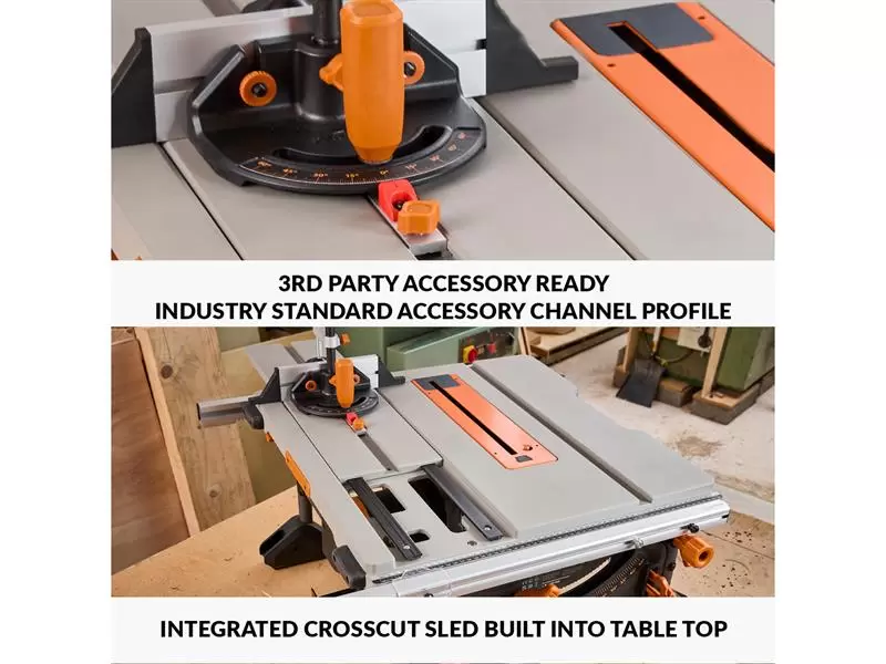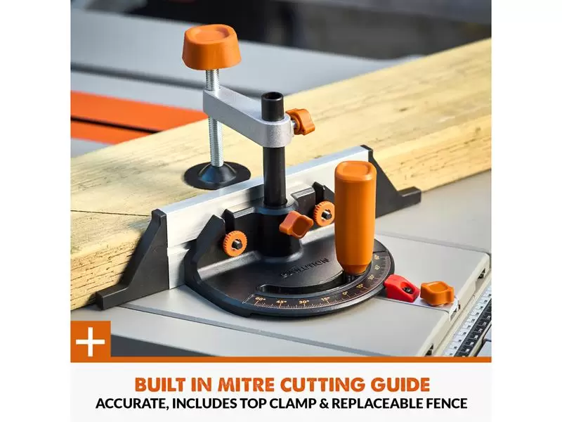 Supplied with: 1 x Folding Wheeled Stand, 1 x Multi-Material TCT Blade 255 x 25.4mm x 24T, 1 x Built In Crosscut Sled, 1 x Blade Guard with Dust Extraction Port, 1 x Dust Extraction Hose & Fittings, 1 x Miter Gauge & Top Clamp, 1 x Outfeed Support, 1 x Adjustable Rip Fence, 1 x Push Stick, 1 x Riving Knife, Blade Changing Spanners and Assorted fixings.