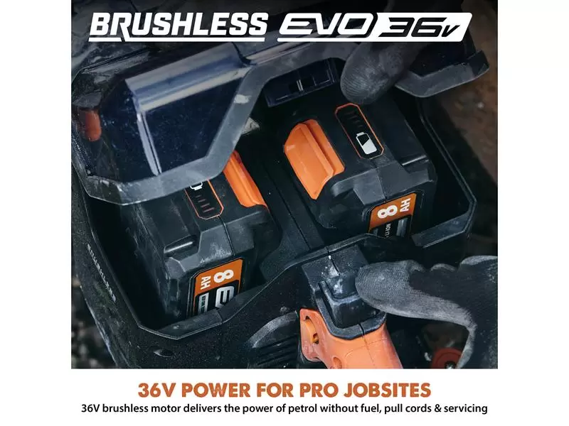 2 x 18V 8.0Ah Li-ion Batteries, 1 x R18RCH-Li2 Dual Port Fast Charger, 1 x EVOMAX PD260SEG-CS2 Blade 260 x 22.2mm, 1 x Wheeled Undercarriage, 1 x Rubber Cap (Extraction Port) and 1 x Hose Connector.