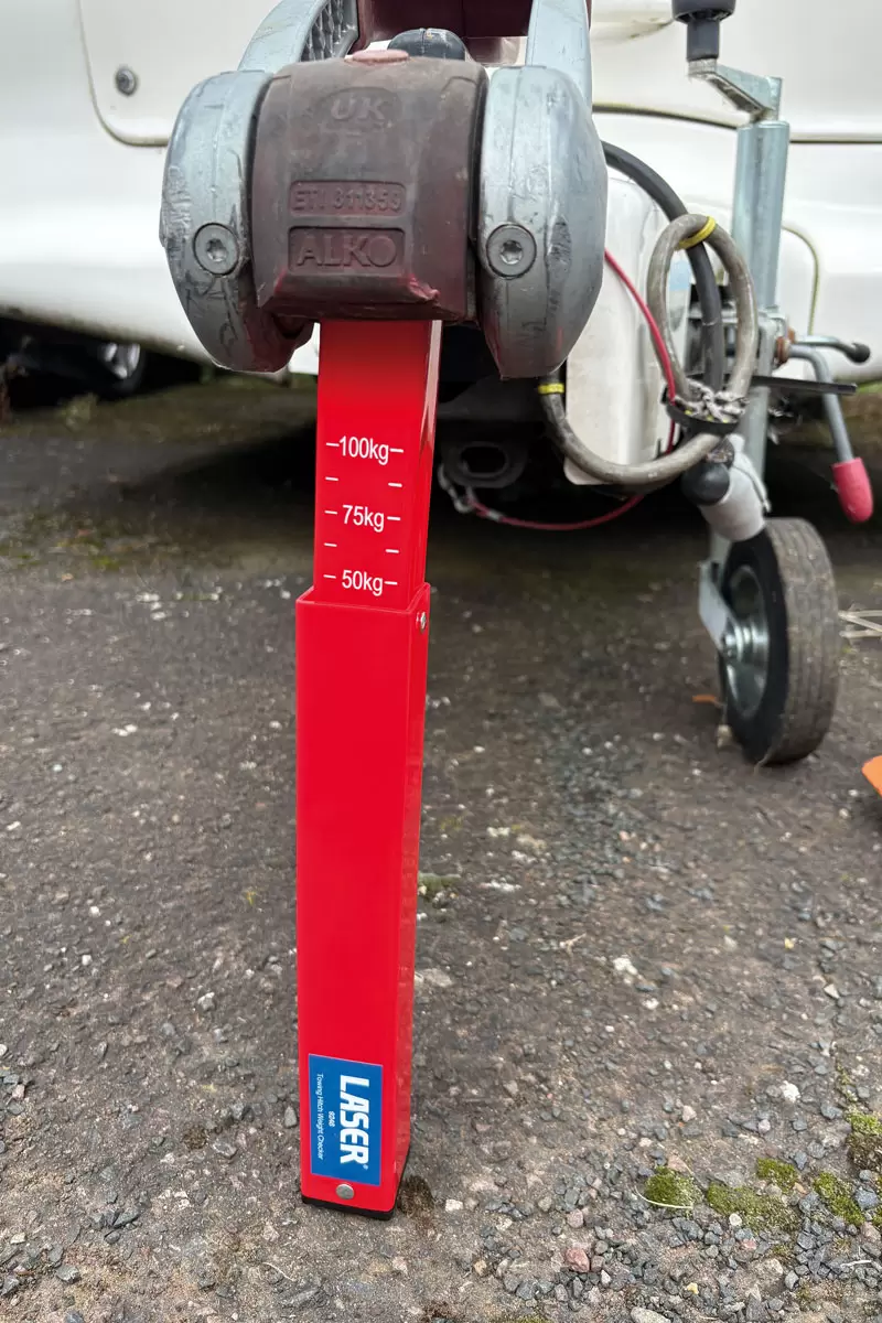 - Simply place it under the towing hitch while you retract the support (jockey) wheel to read the measurement.