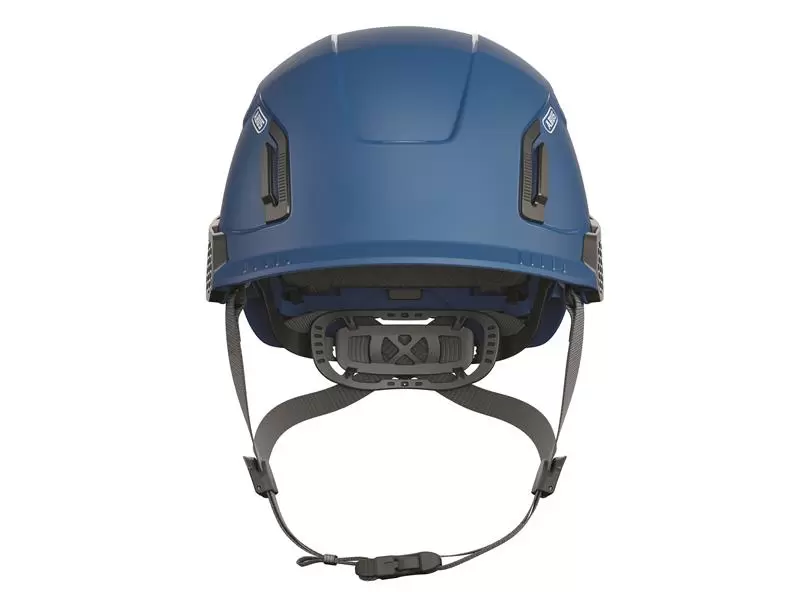 There are clips on the front and back of the helmet for attaching headlamps and full-vision glasses. Ear protection can be attached to a side slot, the Euroslot with a width of 30mm. There is also a slot for attaching eye and face protection.