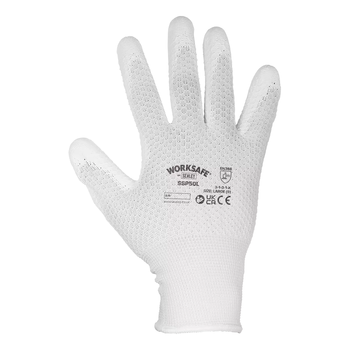 Sealey - SSP50L/6 - Worksafe® White Precision Grip Gloves, Large - Pack of 6 Pairs
