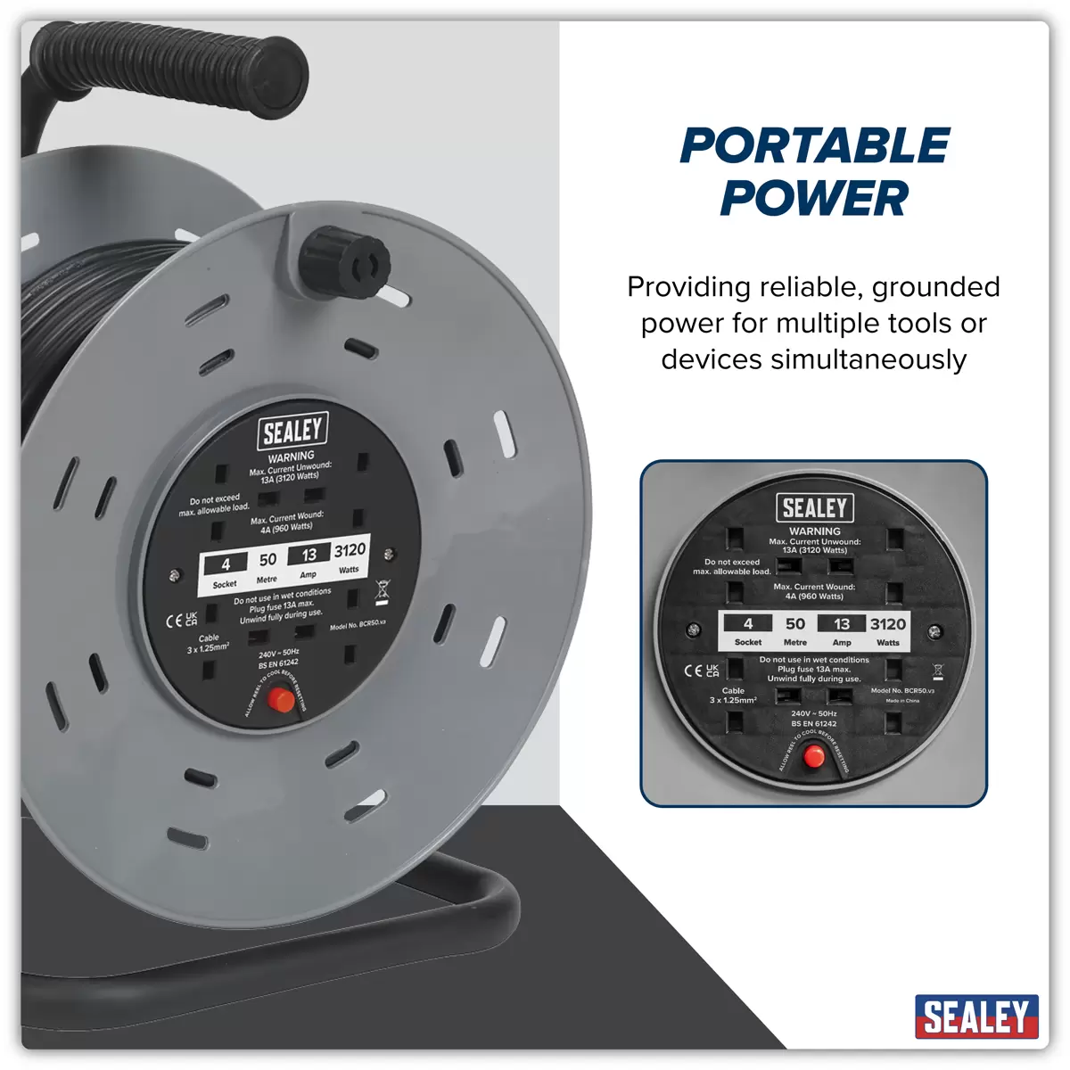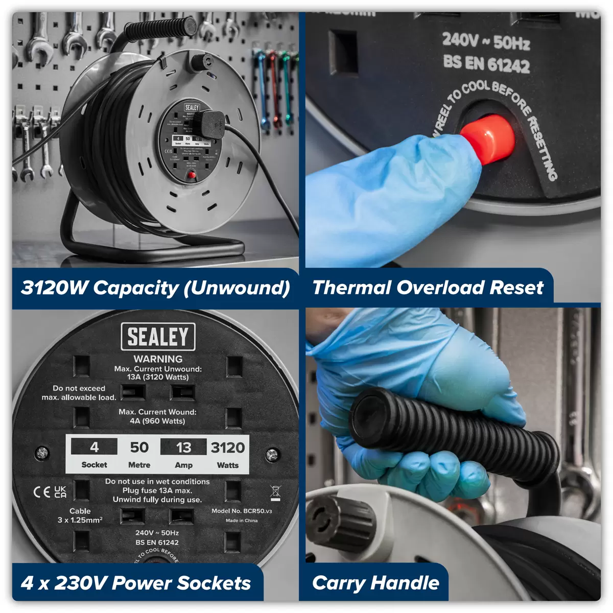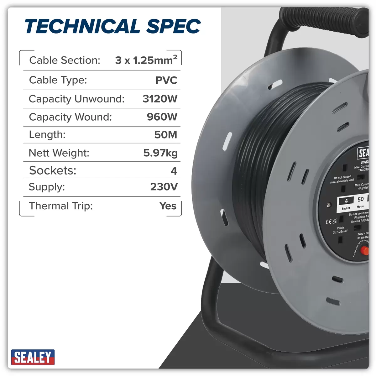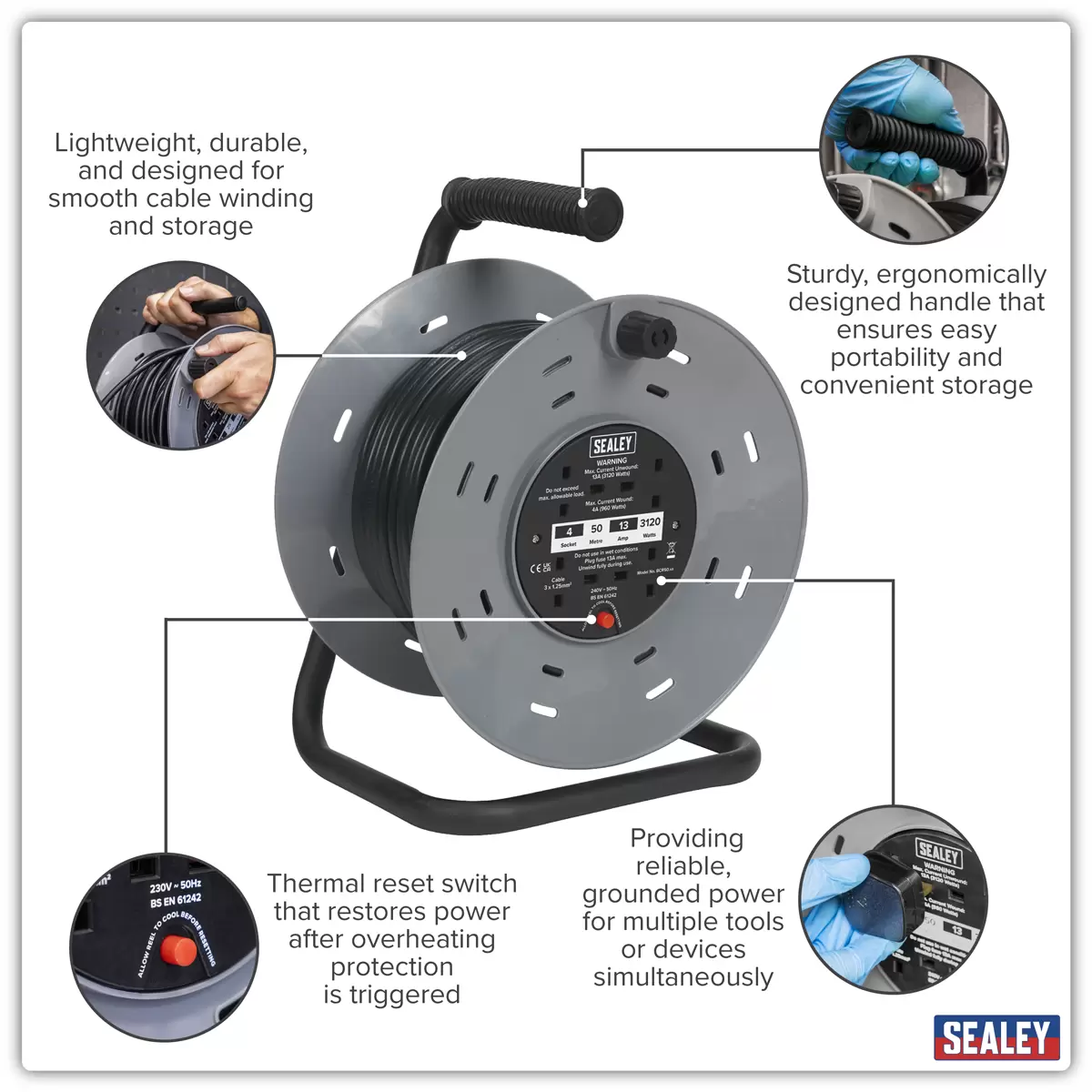 Sealey - BCR50 - 50m Cable Reel with Thermal Trip 4 x 230V