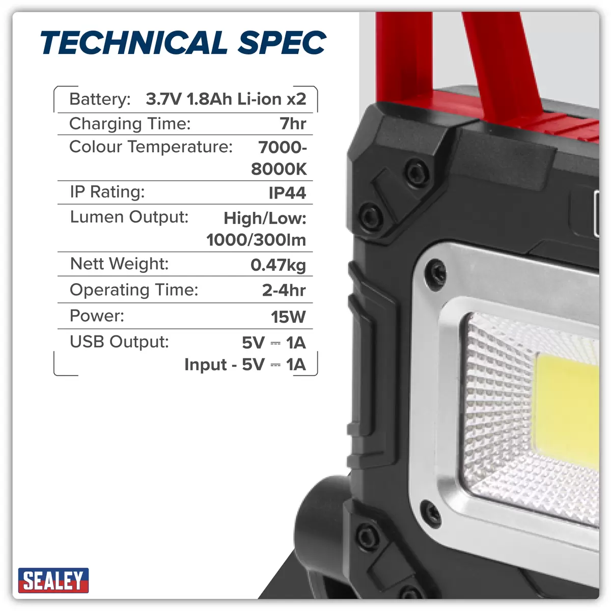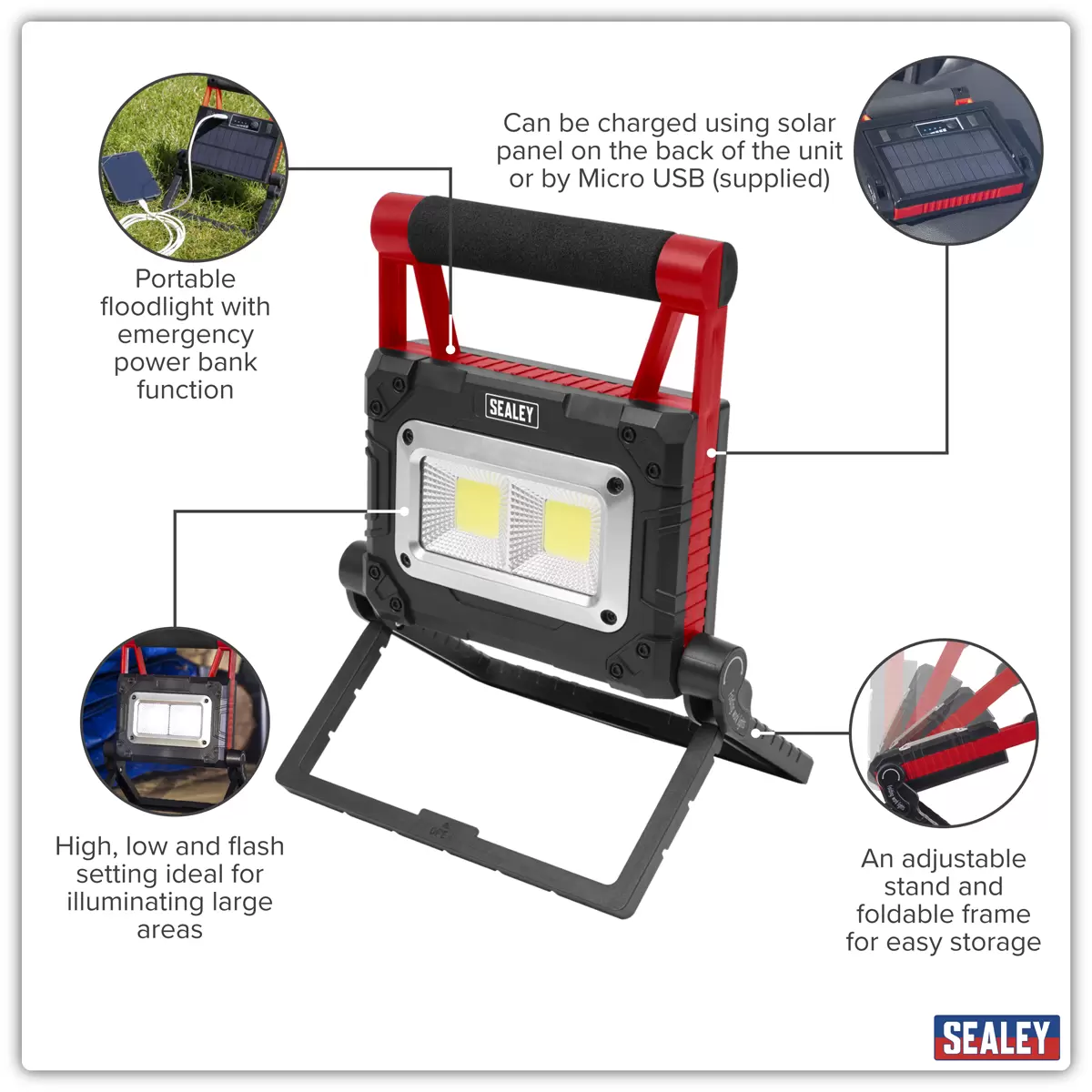 Sealey - LEDFL15WS - Rechargeable Solar Powered Portable Floodlight 15W COB LED