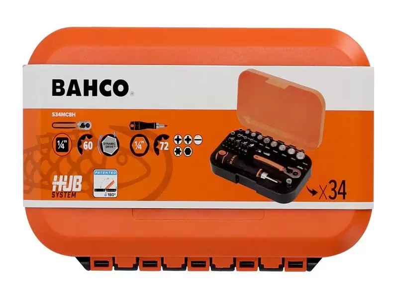 BAHCO BAHS34MC8H S34MC8H 1/4in Drive Socket & Bit Set, 34 Piece