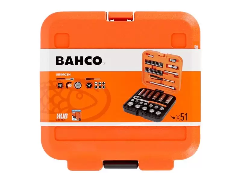 Home > Handtools > Socket Sets & Sockets > BAHCO BAHS51MC3H S51MC3H 3/8in Drive Standard and Deep Socket & 1/4in Bit Set, 51 Piece