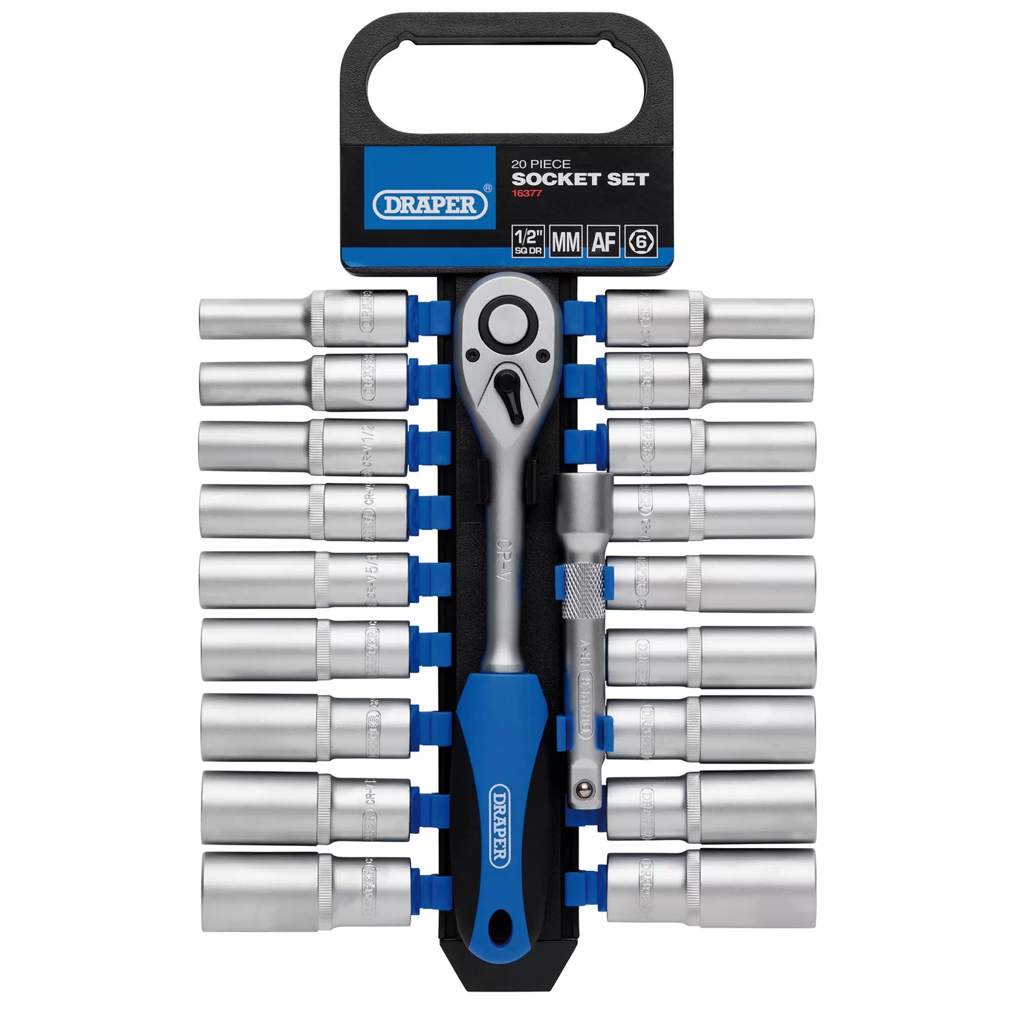 Home > Handtools > Socket Sets & Sockets > Draper Tools - 16377 - Combined MM/AF Deep Socket and Ratchet Set, 1/2" Sq. Dr. (20 Piece)