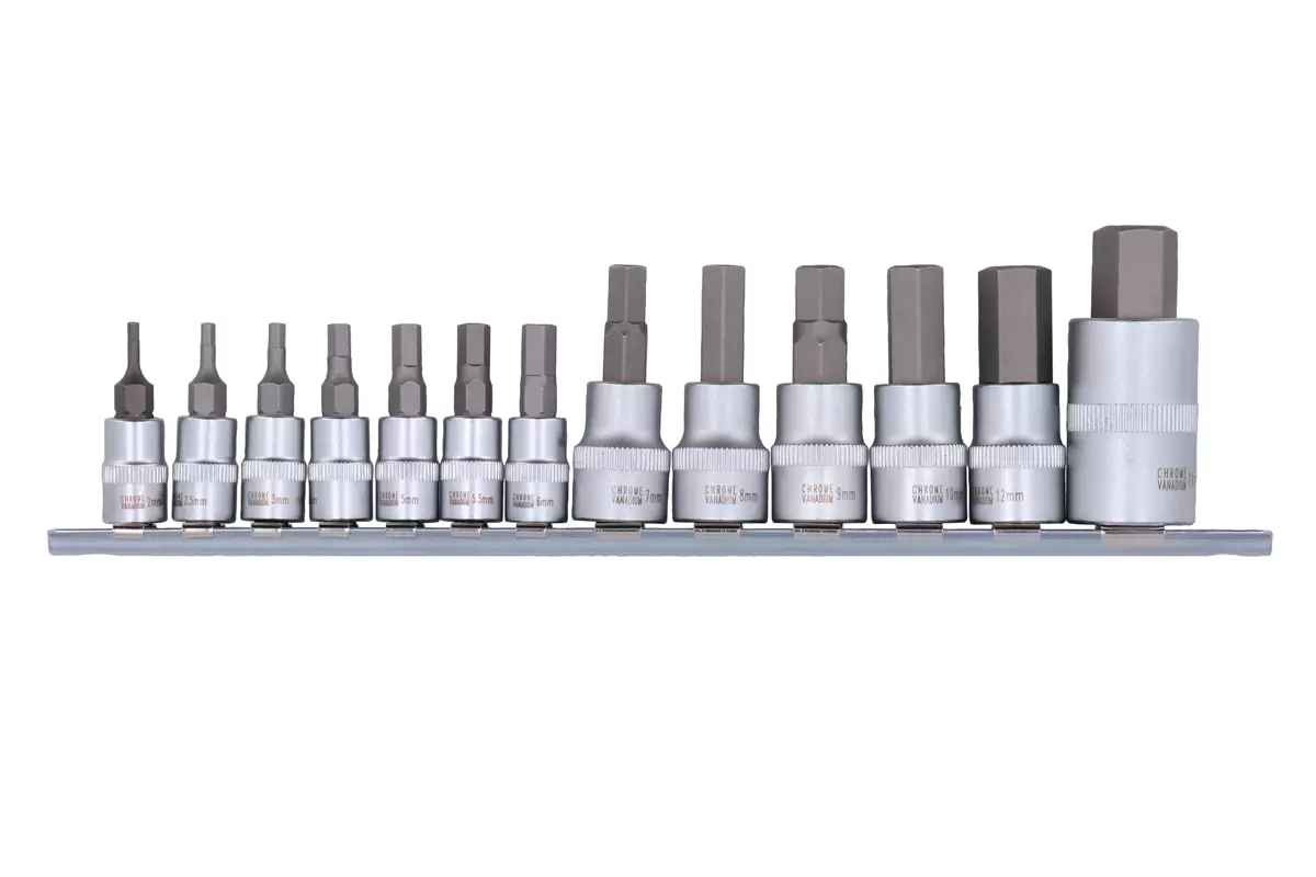 - Sockets manufactured from Chrome Vanadium (CRV) with a satin finish, bits from impact grade S2 steel (except for 14mm which is manufactured from Chrome Vanadium).