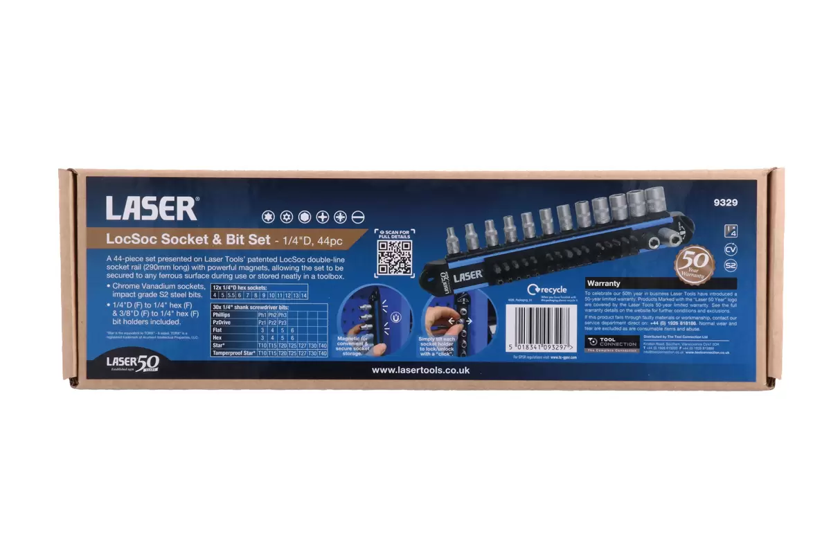 As part of Laser Tools 50th Anniversary, this tool set is offered with a 50-year limited warranty. For full details, please visit our website.