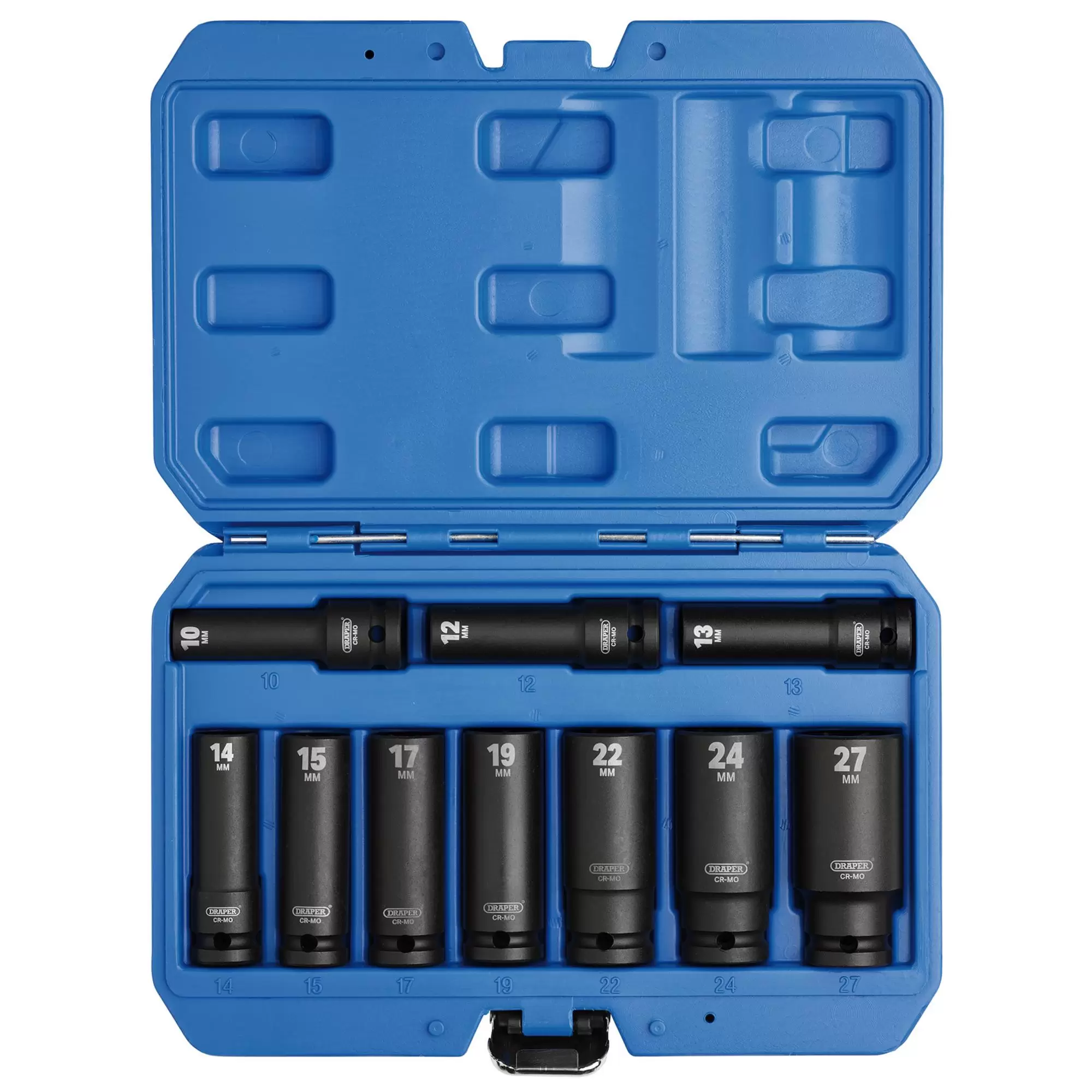 Draper Tools - 83096 - Metric Deep Impact Socket Set, 1/2" Sq. Dr. (10 Piece)