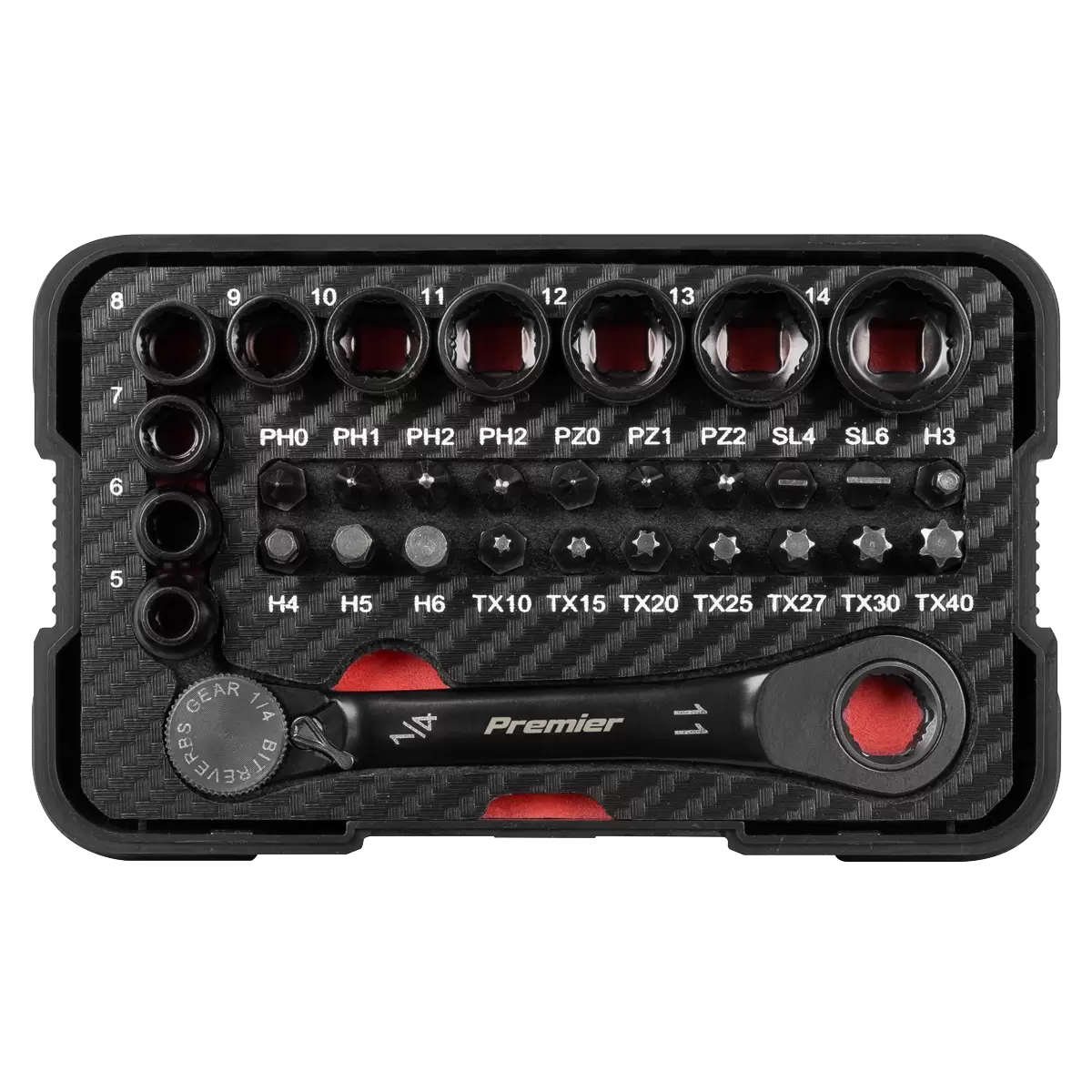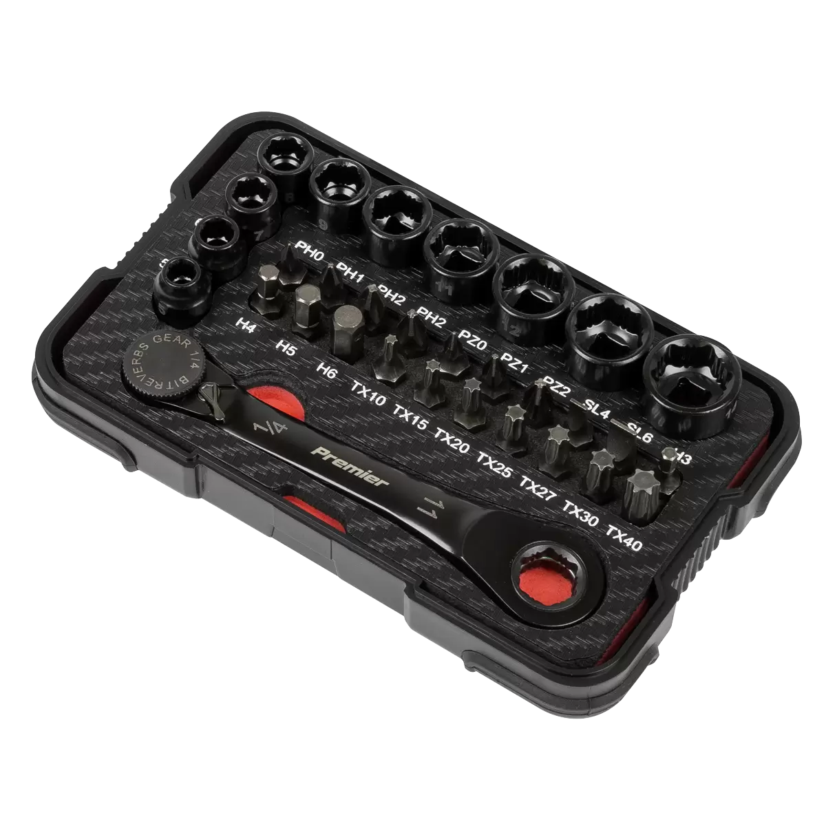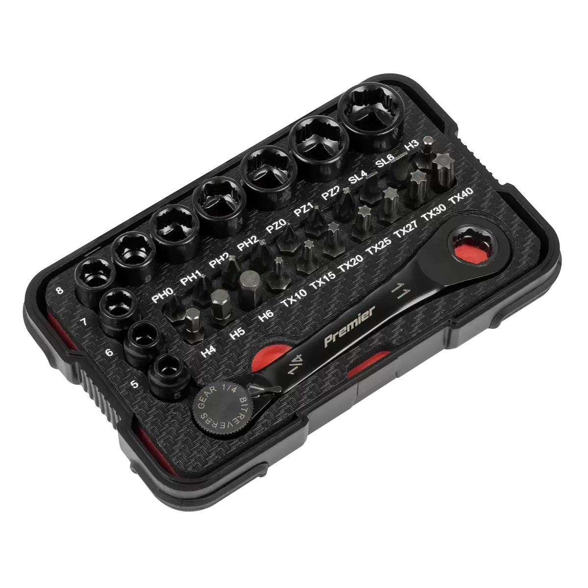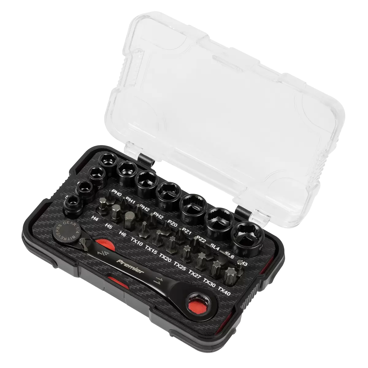 Sealey - AK2112 - Premier Black Go-Through Lock-On™ Low Profile Socket & Bit Set 1/4"Sq Drive 31pc